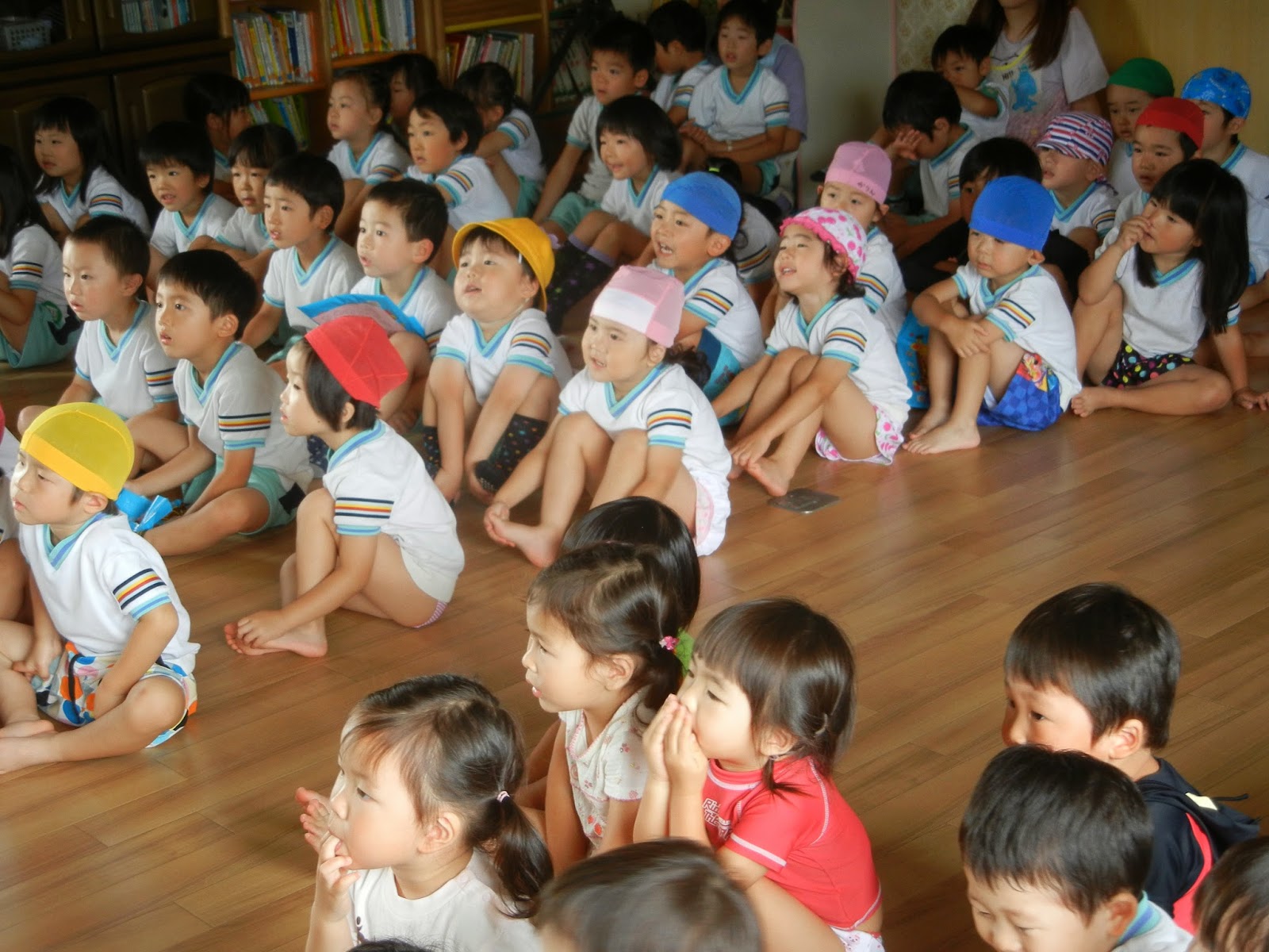今月は、まさこ先生がペープサートでお話をしてくれました。ペープサートは、紙でつくった人形を使ったおはなしです。お化けの人形が出てくると、みんなキャーキャー叫んで大興奮!楽しいお話だったね!また来月のお誕生日会もお楽しみに!