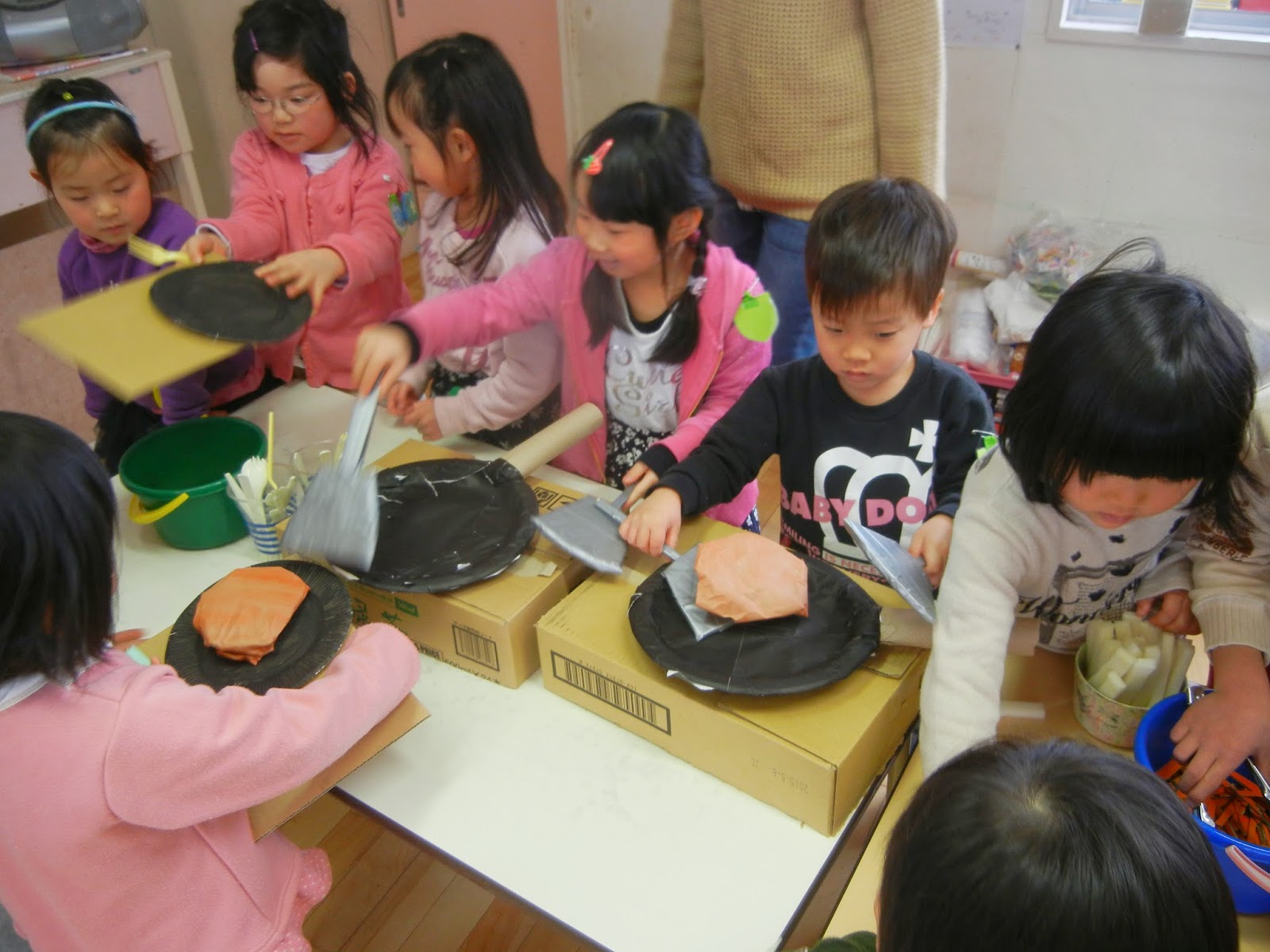 1年間、いろいろな形であそんできたわいわいデー。自然の中で思い切り遊んだり、みんなで協力して作ったり、クラスの枠を取り外して交流をしてきました。大きい子に対してあこがれの眼差しを送ったり、小さい子に対してお世話をしてあげようと優しい気持ちを持ったりと、活動を通して様々な触れ合いが見られ、嬉しくなりました。毎月子どもたちが楽しみにできるよう、来年度もいろんなテーマを取り上げていきたいと思っています!