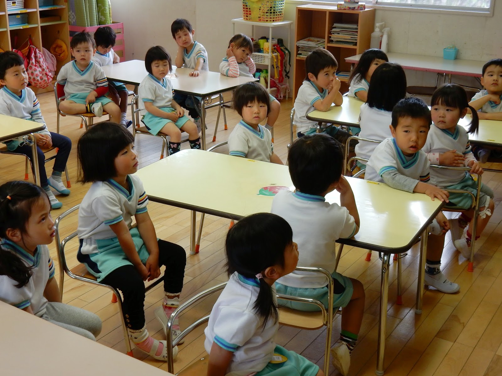 今日が初めての避難訓練になったお友達もいたので、確認もかねてクラスの先生から避難の仕方を聞きました。煙を吸わないようにハンカチや手で口を押えて逃げることも、大きい子はしっかり覚えていました。