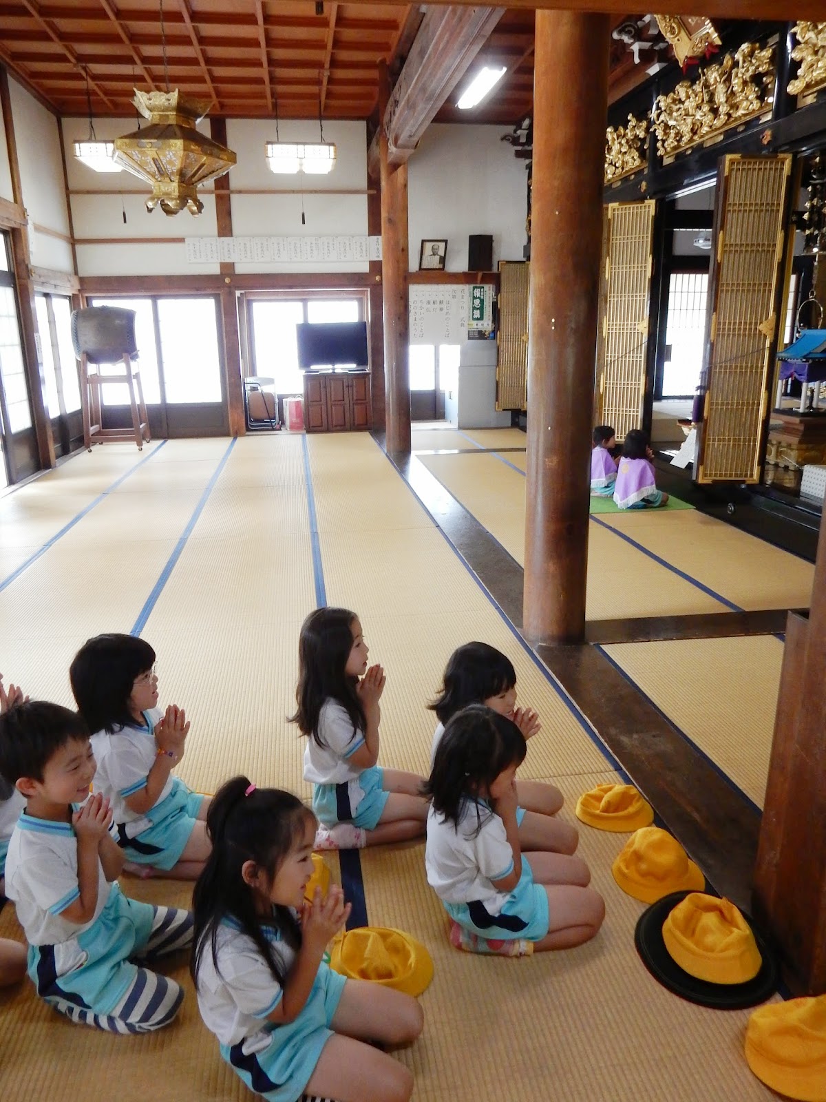 年長さん、今日は午前中、浄願寺に行ってきました。明日の花まつり、式典でお仕事をしてもらうので、そのリハーサルです。