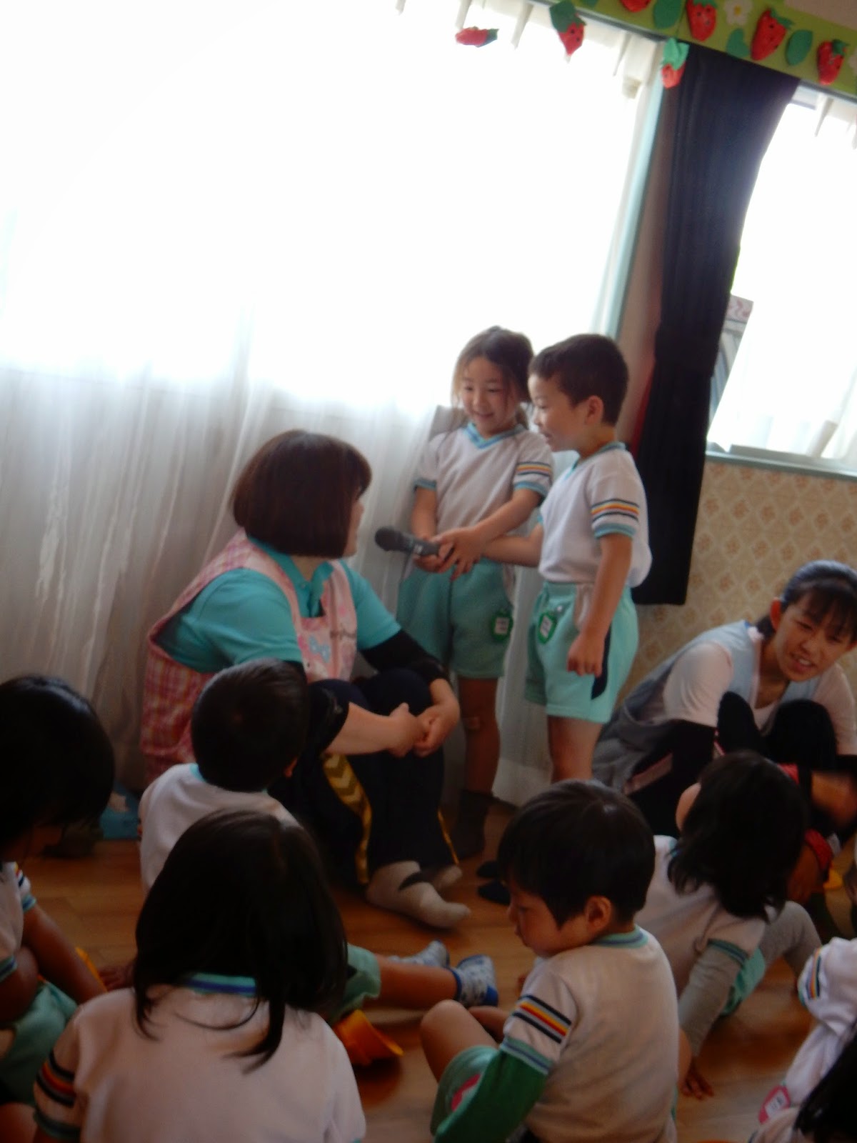 1,2,3,4...5月は、8人のお誕生日さんと、もえ先生も!ひまわり組のお当番さんがインタビューをしてくれました。ひよこぐみのお友達も、名前と年齢を聞かれて上手に答えていました!