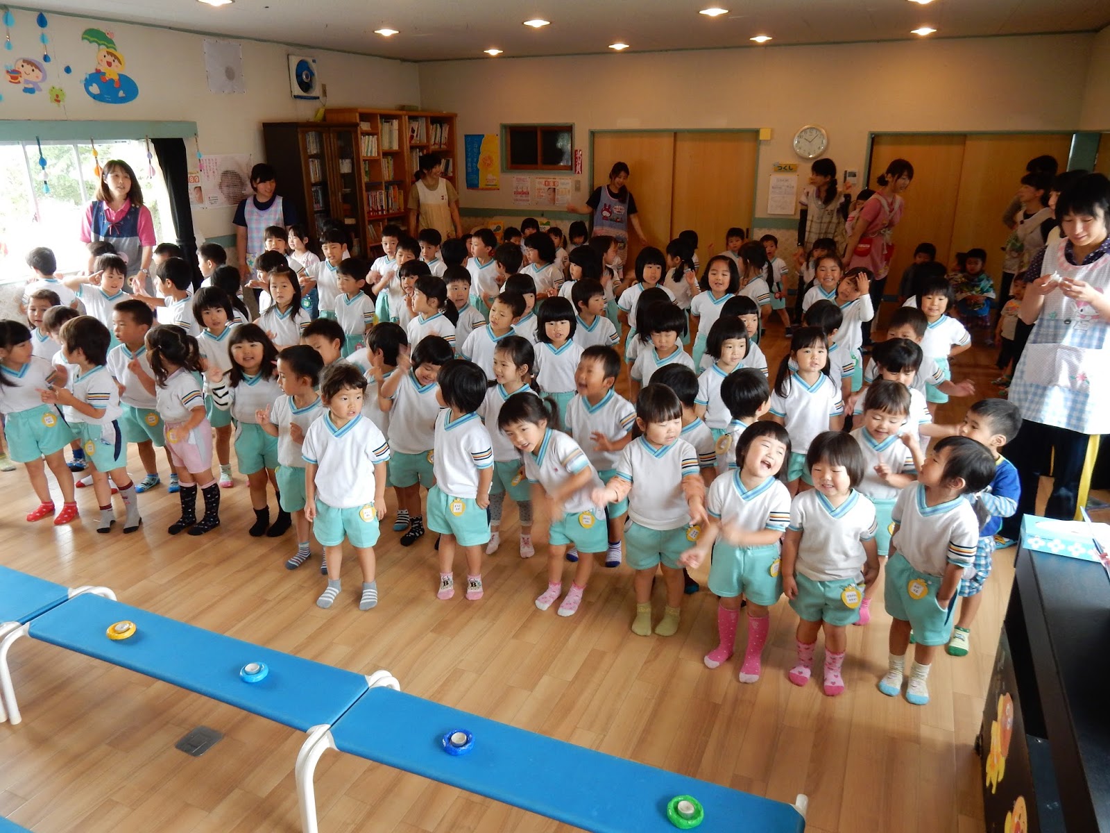 今日はこの時期らしいてんきでしたね。プールに入れなかった今日は、みんななんだか残念そう。水遊び、楽しいですもんね!