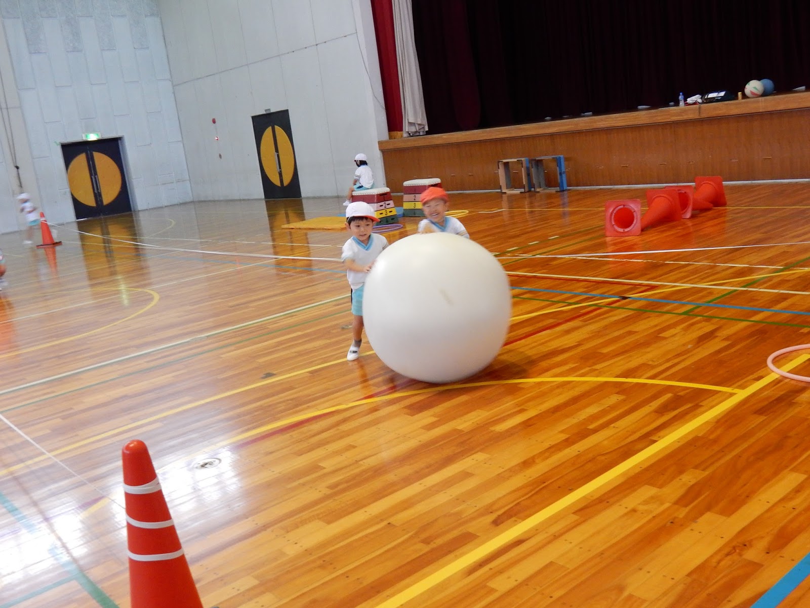 3歳以上児さんたちは昨日、今日は体操教室&水泳教室が行われました。大好きなゴロゴロ先生が2日連続で保育園に遊びに来てくれるなんて、1年で1回だけ!今月だけのスペシャルなんです♪きのうはいいお天気になり、一緒にプールを楽しみました。今日は、町民体育館に器具を運び込んでの体操教室。実は、昨日の夕方、各クラスの担任は、ゴロゴロ先生と運動会教具についての打ち合わせをさせてもらいました。今年の競技もいろいろ工夫して、楽しい内容のものになりそうですよ!その話し合いがあったので、今日の体操教室は、運動会を意識したサーキット内容を用意していただきました。10月に向けて、これから少しづつ取り組んでいきます。ご家族の皆さんも、楽しみにしていてくださいね!