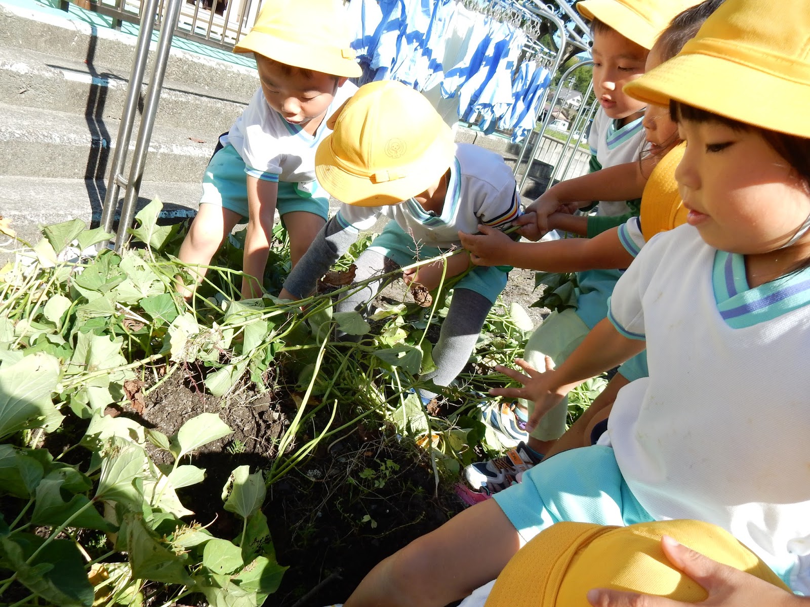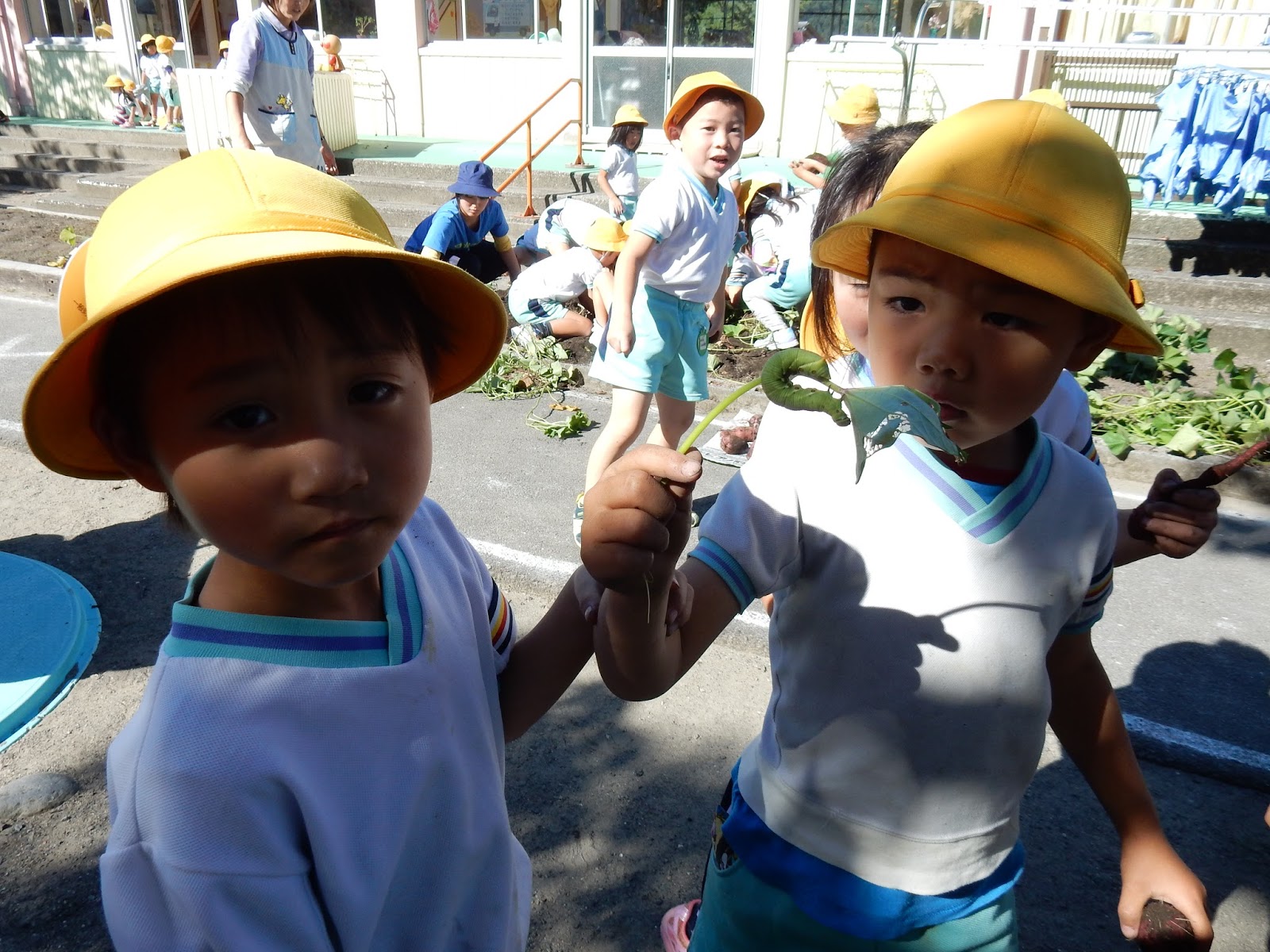 『よしっ!サツマイモの収穫やぁ!!』というひまわりさんの声。なに!?今から!?と、カメラを持って私も飛び出しました!(笑)