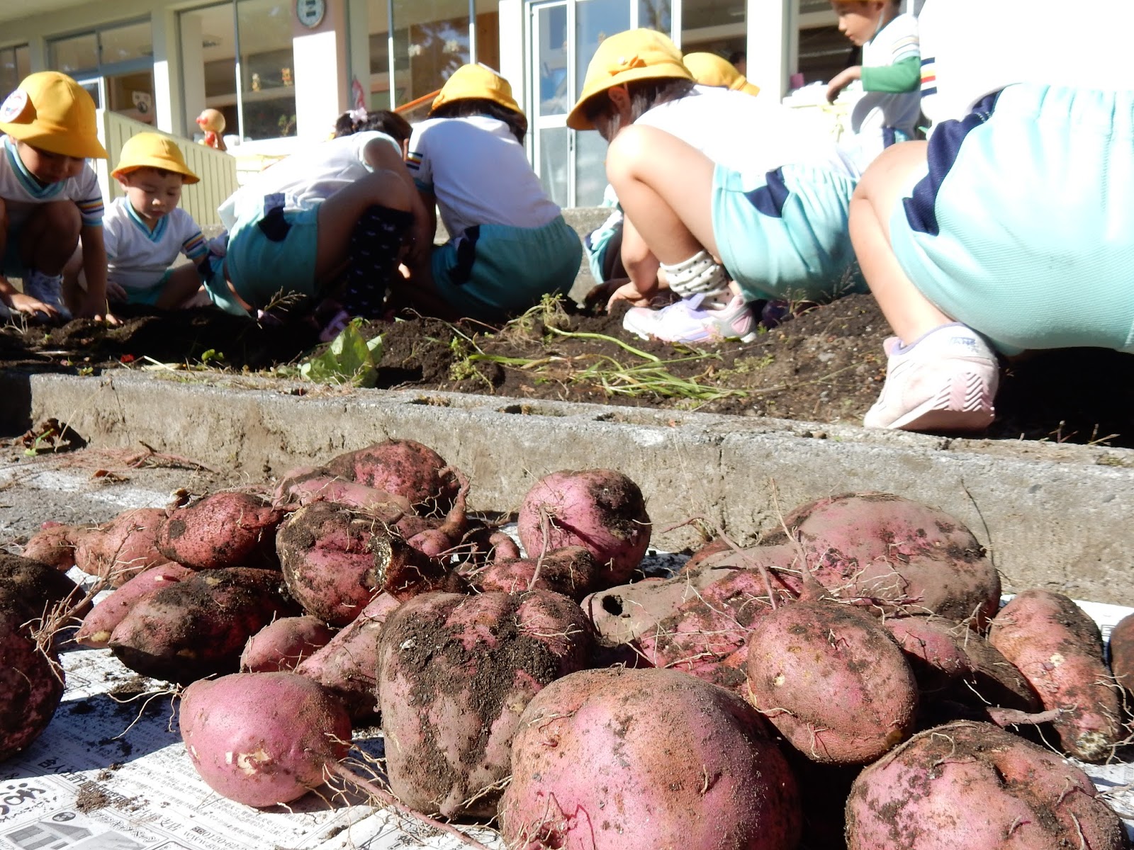 『こんなん出てきた!』 『見て~!!』次から次へとおいしそうなサツマイモが並んでいきます。土の中に埋まっているサツマイモも残さず収穫しようと、土だらけになりながら夢中で掘ります。そうすると…