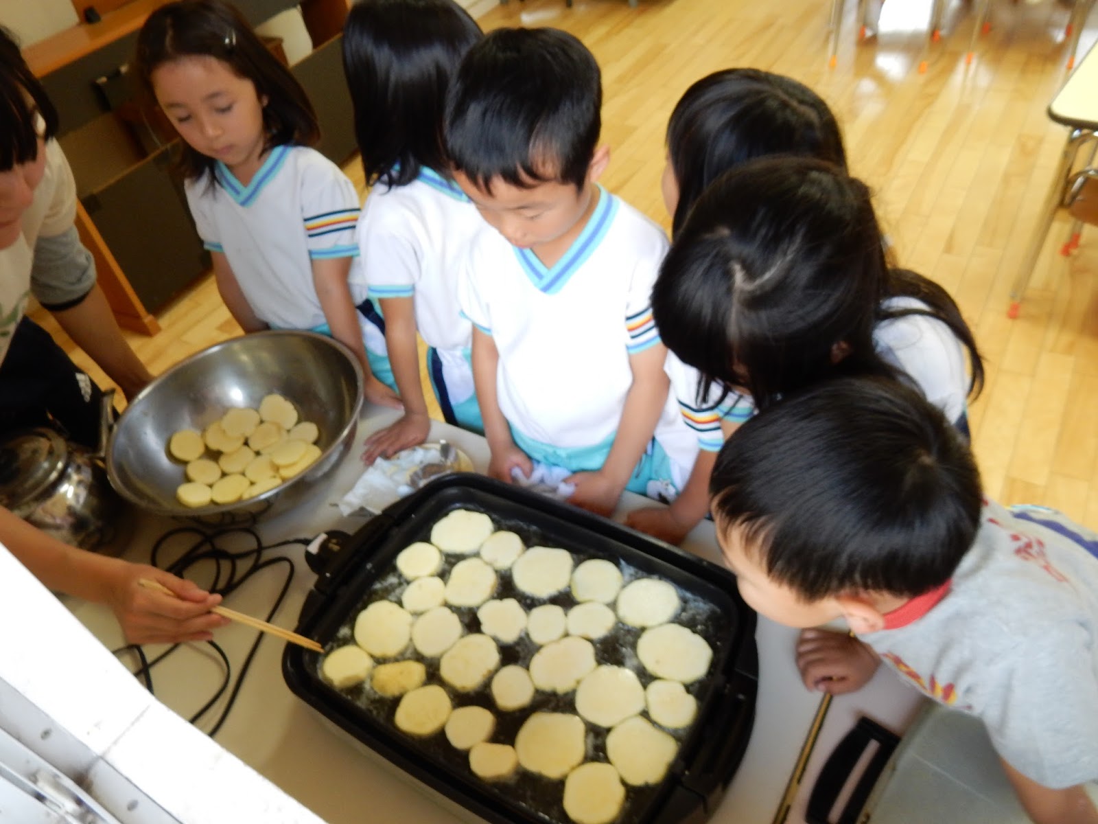こんなにいっぱい焼けました(笑)たくさんあるように見えますが(いや、一杯あったんですけど…)あっという間に売り切れてしまいました!おかわりの行列が途切れることなく続いていました。優しいひまわりさん、他のクラスの先生にもおすそ分けしてくれたり、写真を撮っていた私に『はい!』とたくさん持ってきてくれたので、一緒に食べてました♪ホントに甘くておいしいサツマイモでした。