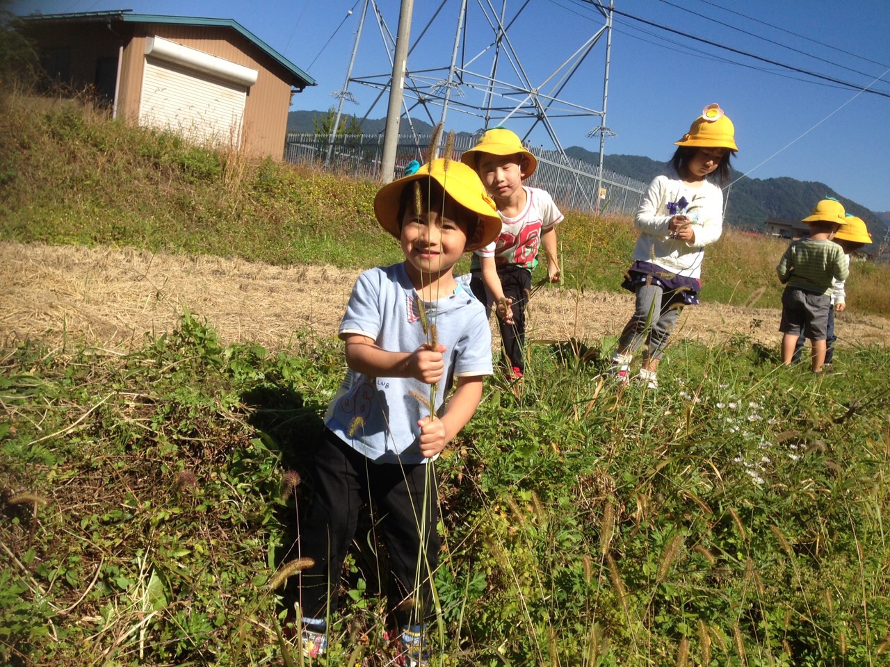 たくさん生えている所をみつけたみたい!それにしても立派な猫じゃらしを持っていますね!こうやって、一度自然で遊んだ場所って、次に通った時にも結構子ども達、覚えていてくれるんです。『あそこで採ったなぁ!』とか、『あそこ行けば一杯あるよ!』なぁんていう声が聞こえてくると嬉しくなります。あぁ、楽しかったんだな~って。