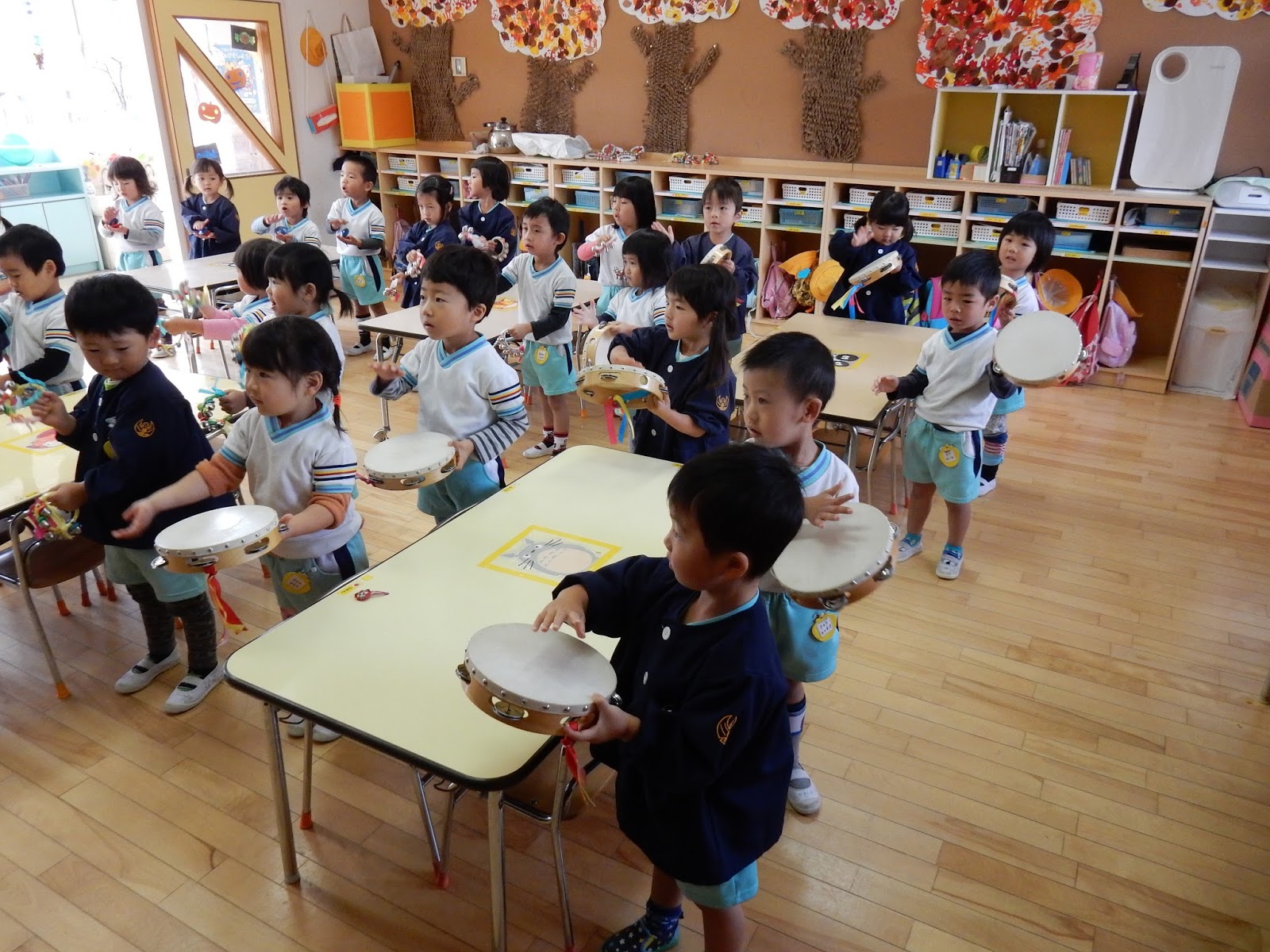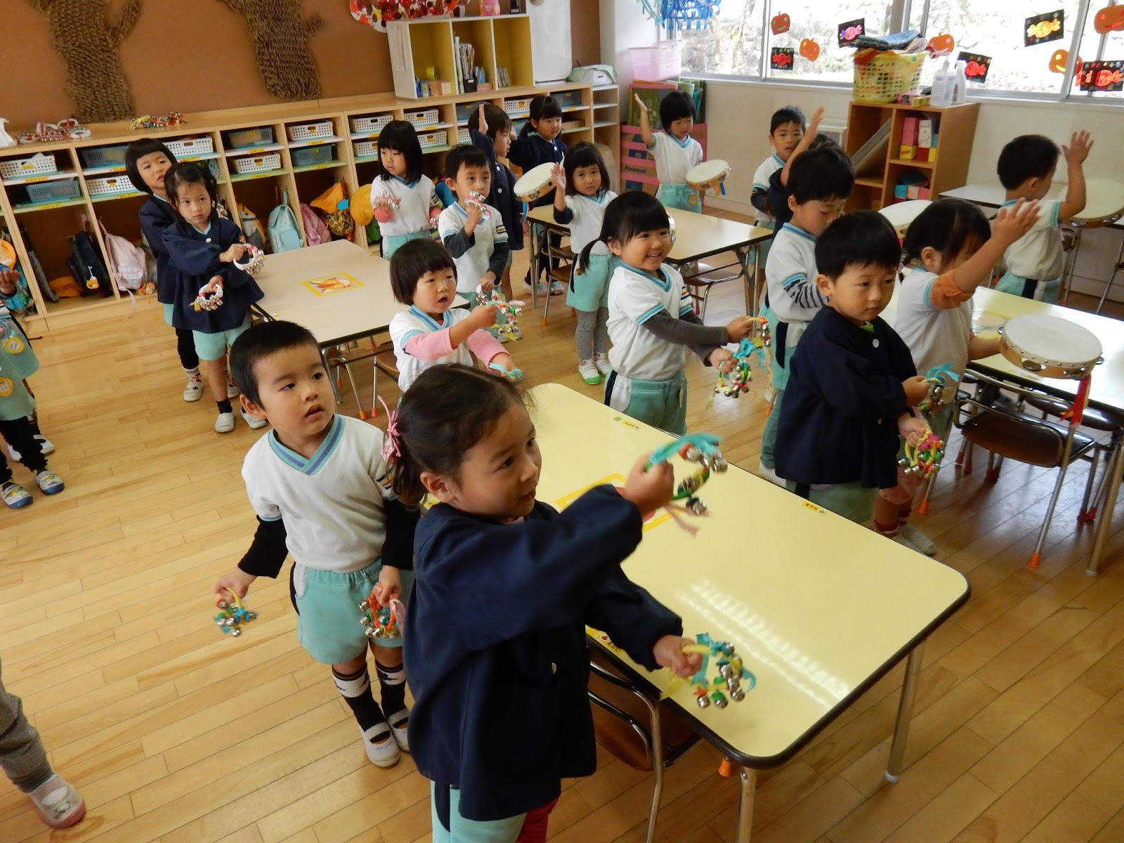 にぎやかな音がしてきたのはたんぽぽさんのお部屋でした。楽器あそびを楽しんだようです。トマトのリズムや、バナナのリズムも、鼓隊を見ていたからか、みんな上手!いろんな楽器に触れて遊んでみました。この活動が2月の発表会に活きていきます!