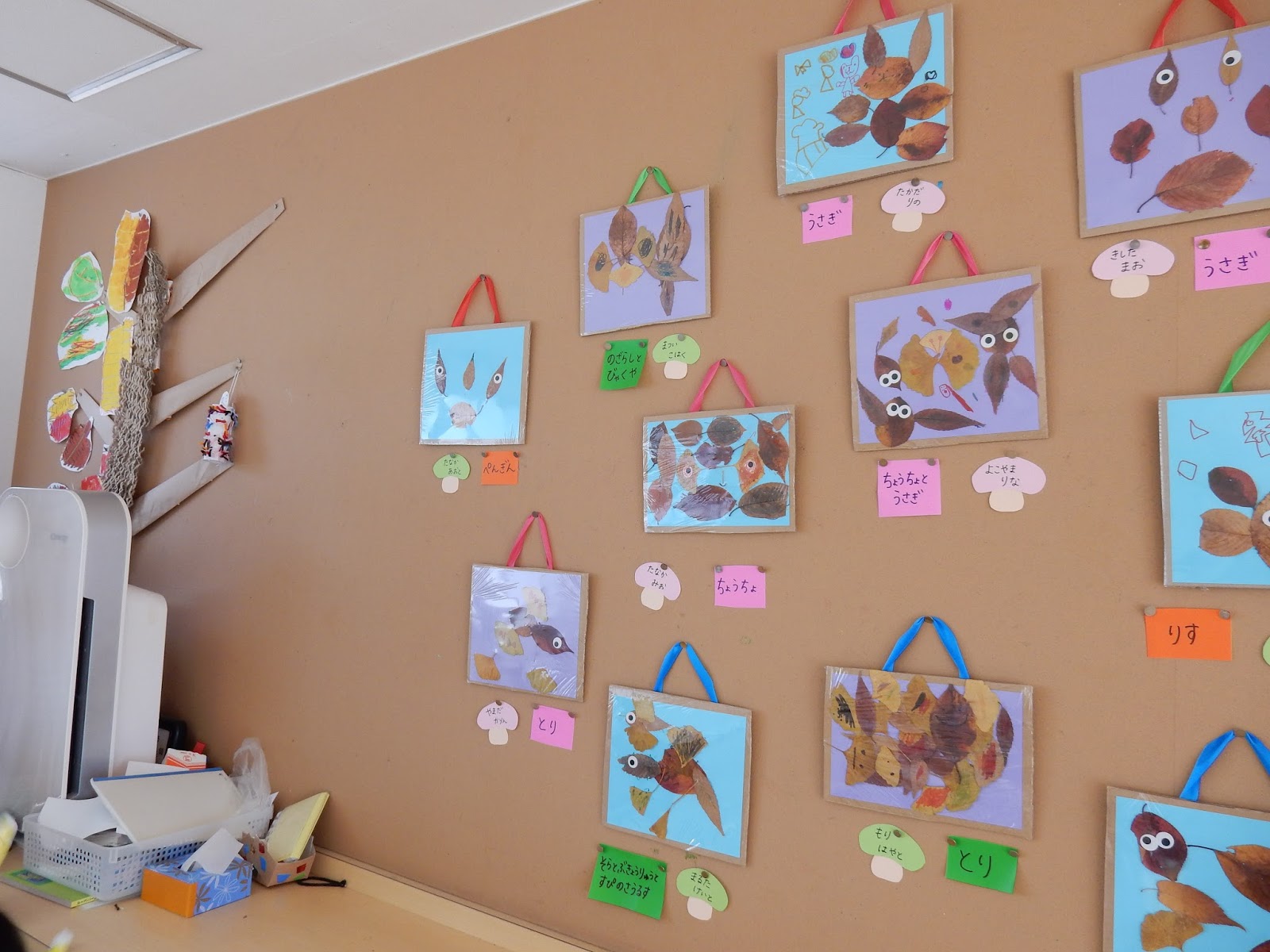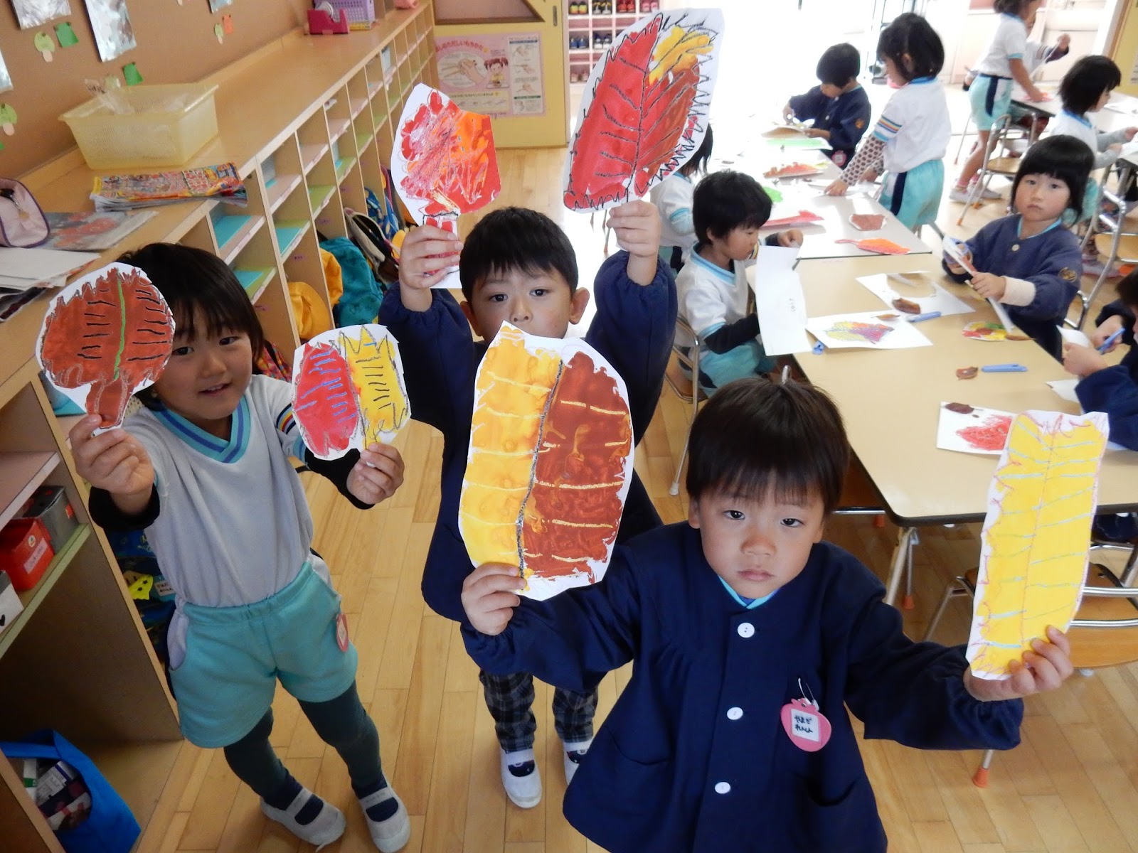 寒さが増し、園庭の紅葉も進みました。こんな制作をしてみました!