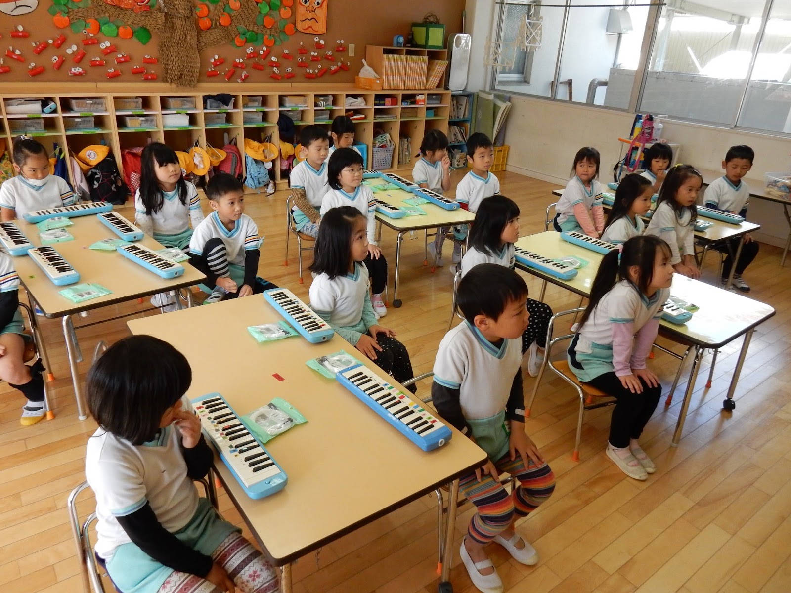 『まだやりたい~』という声の中、今日の練習はおしまい。明日からは毎日練習です。最終目標は、ちゅうりっぷと、きらきら星を弾けるようになること!みんな頑張ろうね!