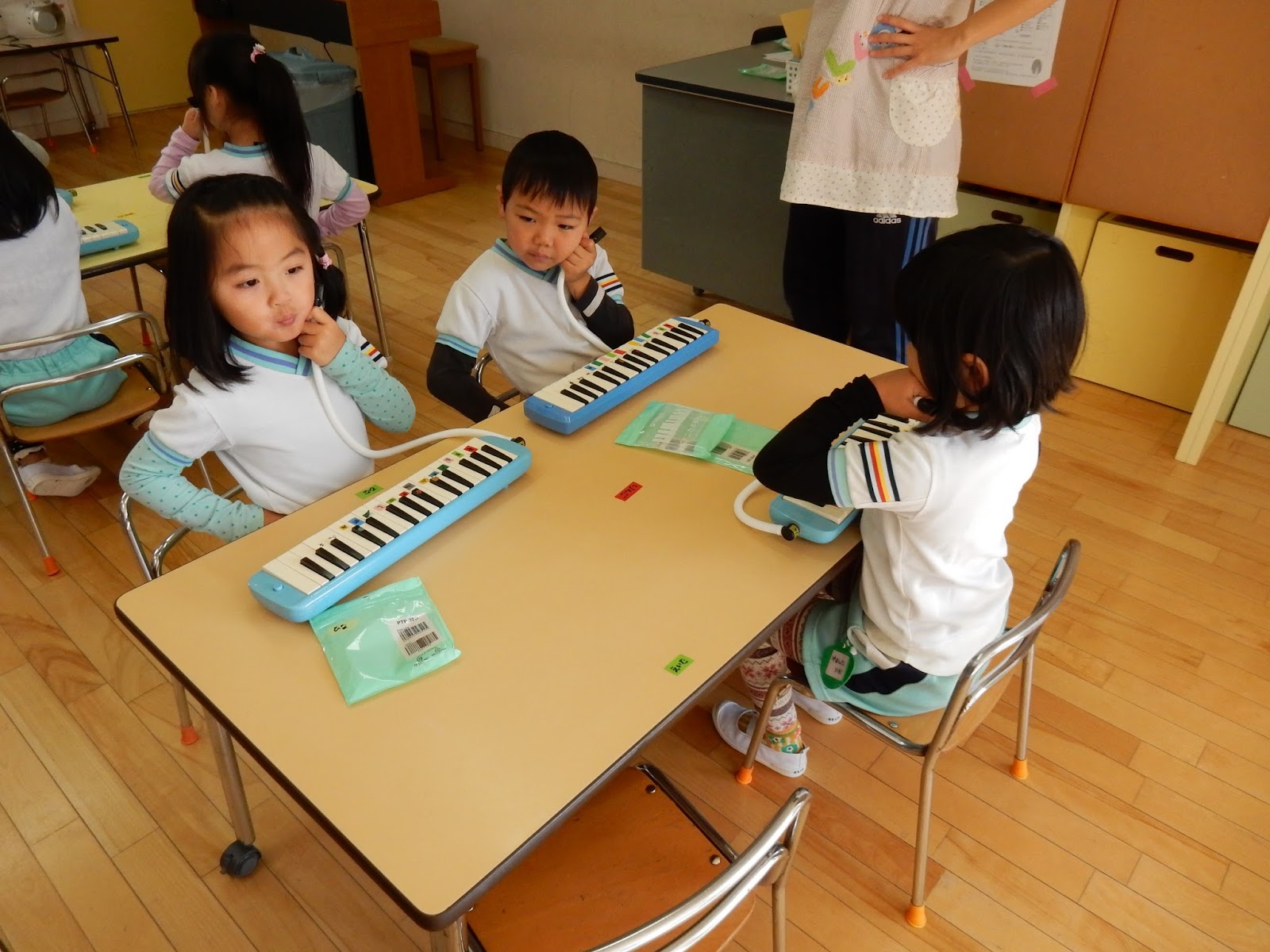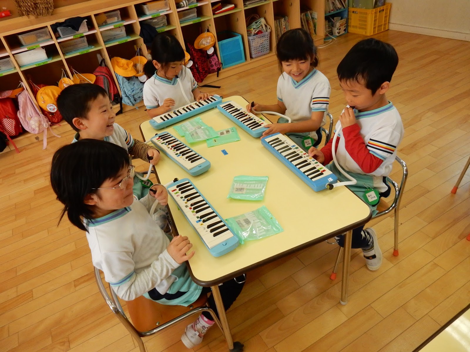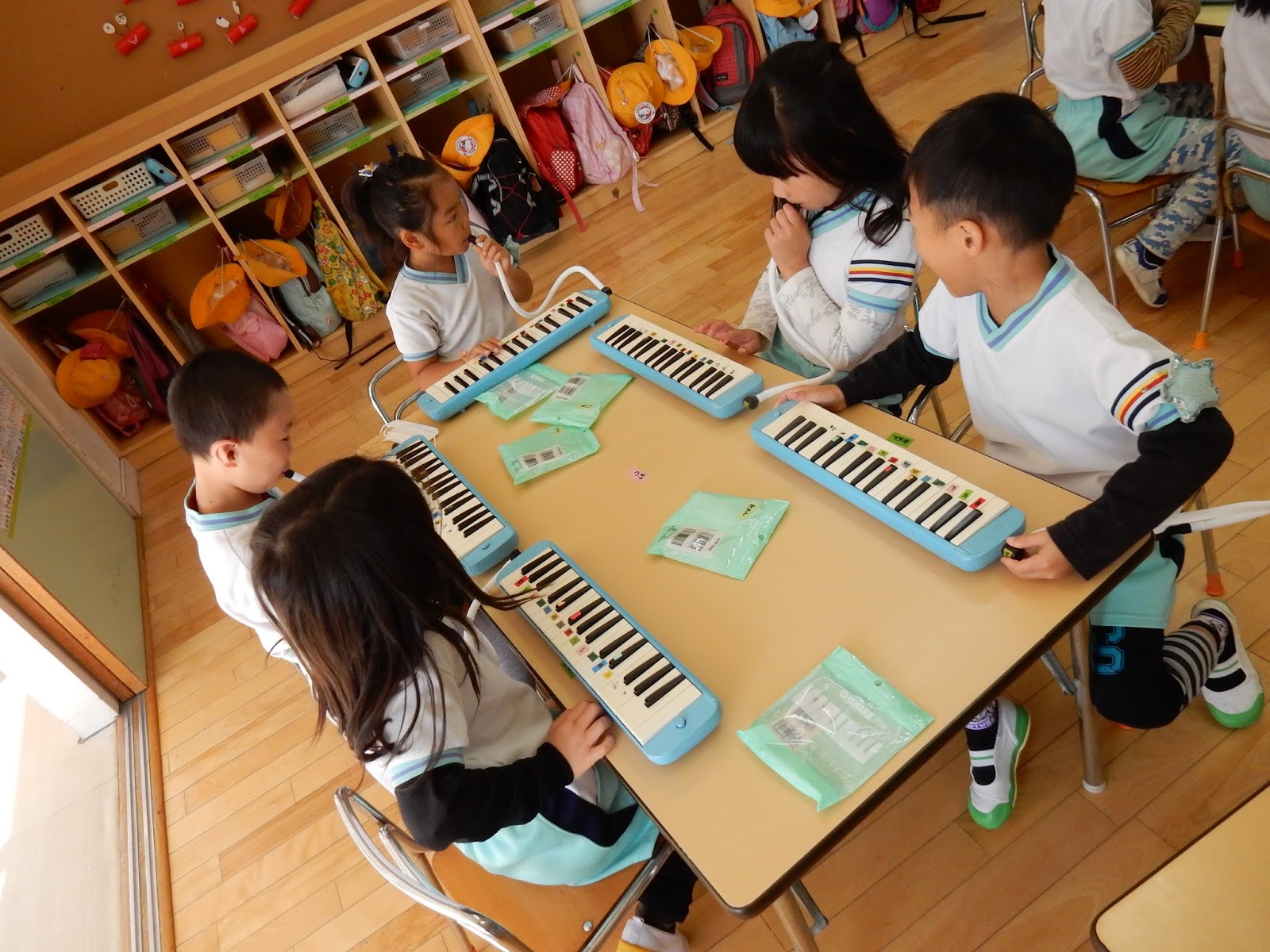 今日は、ピアニカを出してきて、初めての練習です。お兄ちゃん、お姉ちゃんがいて使ったことがある子も、初めて触った子も、まずは自分で好きなように吹いてみよう!と先生に言われて…