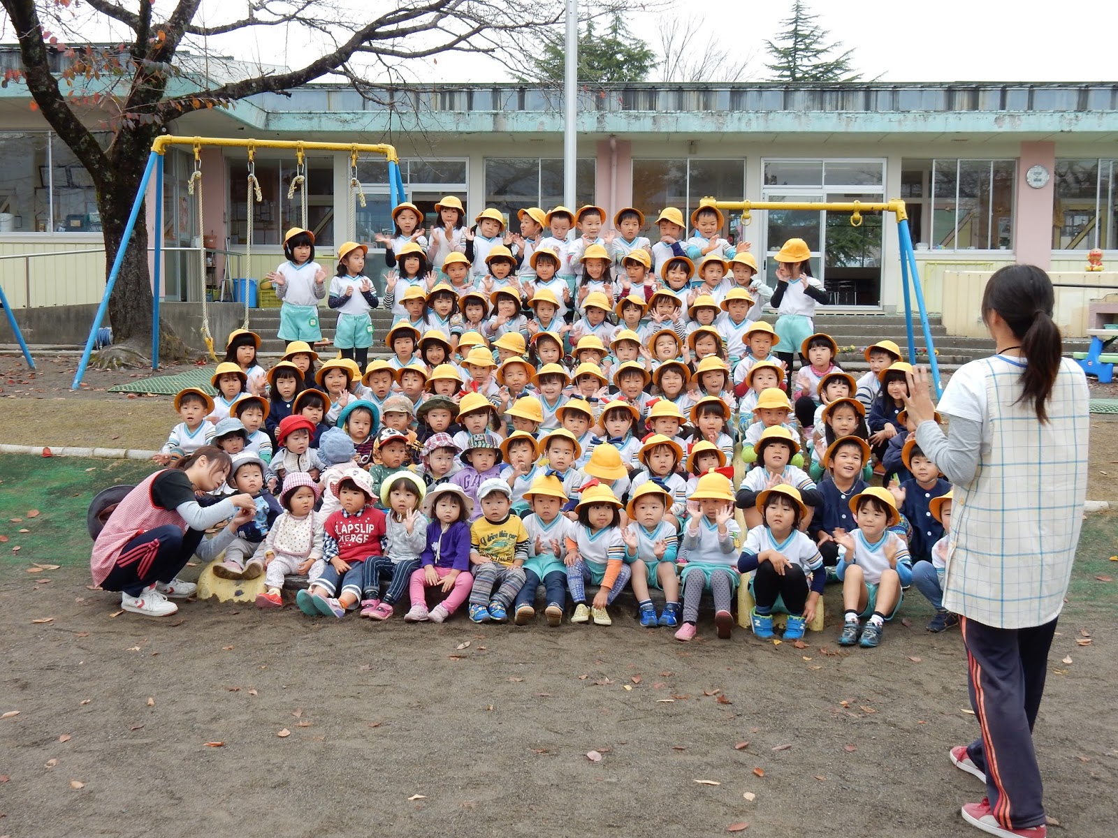 先週です。なにやらみんなが並んでいます。ちゃんと顔が出ているか、鼻水出てないかな、ご機嫌で座っているかな。。。職員の念入りなチェックが入ります。準備ができたところで。。。