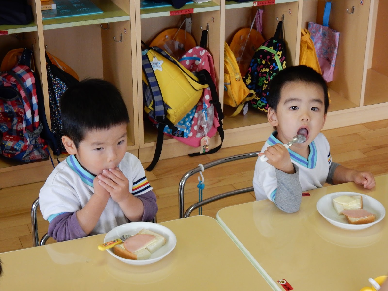 ちぎってはさんだり、大きなままはさんでパンからはみ出していたり、いろんなサンドイッチができましたよ~。