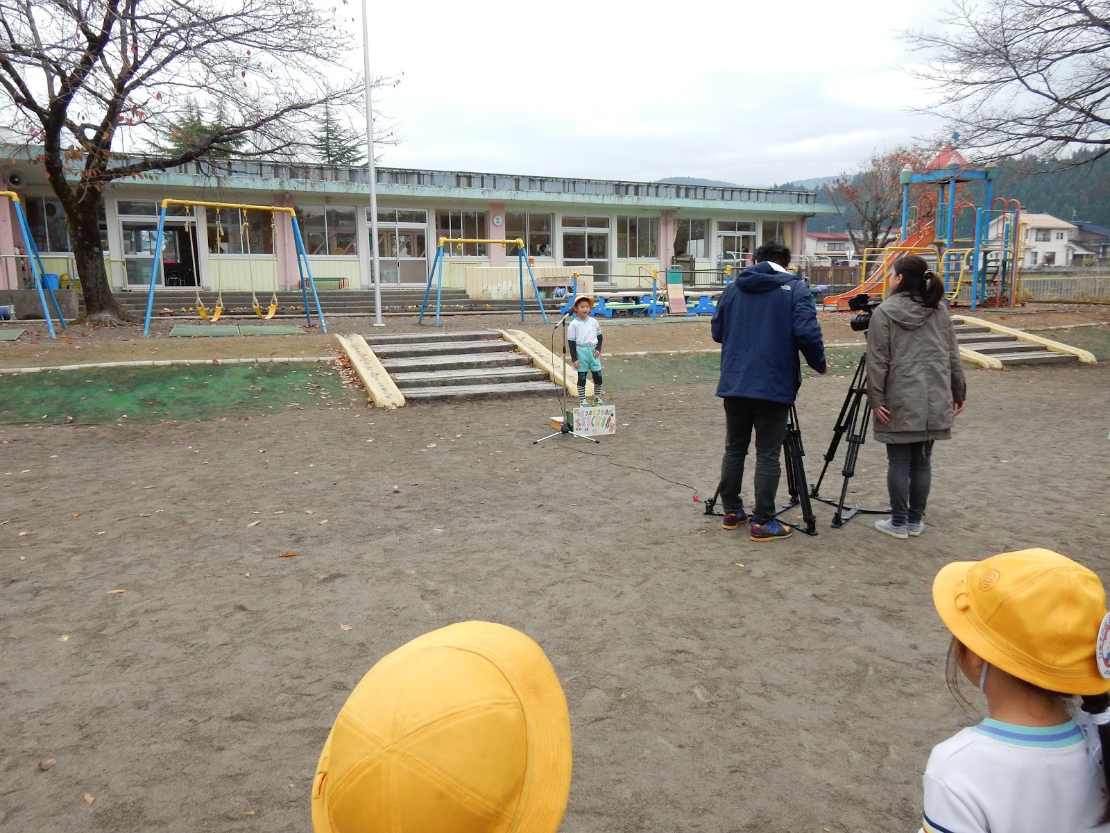 年長さんは、1人ずつインタビュー。おおきくなったら、○○○になりたいです。元気にカメラの前で将来の夢を話します。どんな答えが返ってきたのか、放送が楽しみですね。年長さんだけではありません。体操や、マラソン。遊んでいる様子など、たっぷり撮影していってもらいました。放送日は、明日持ち帰ります、園だよりを見て確認してくださいね。