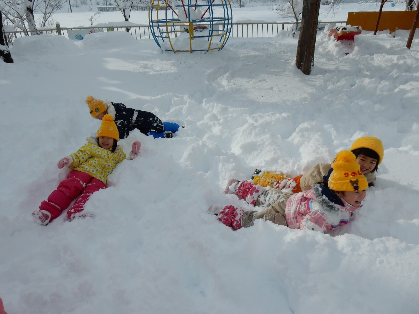 降りましたね!やっと例年と同じ園庭の景色です。