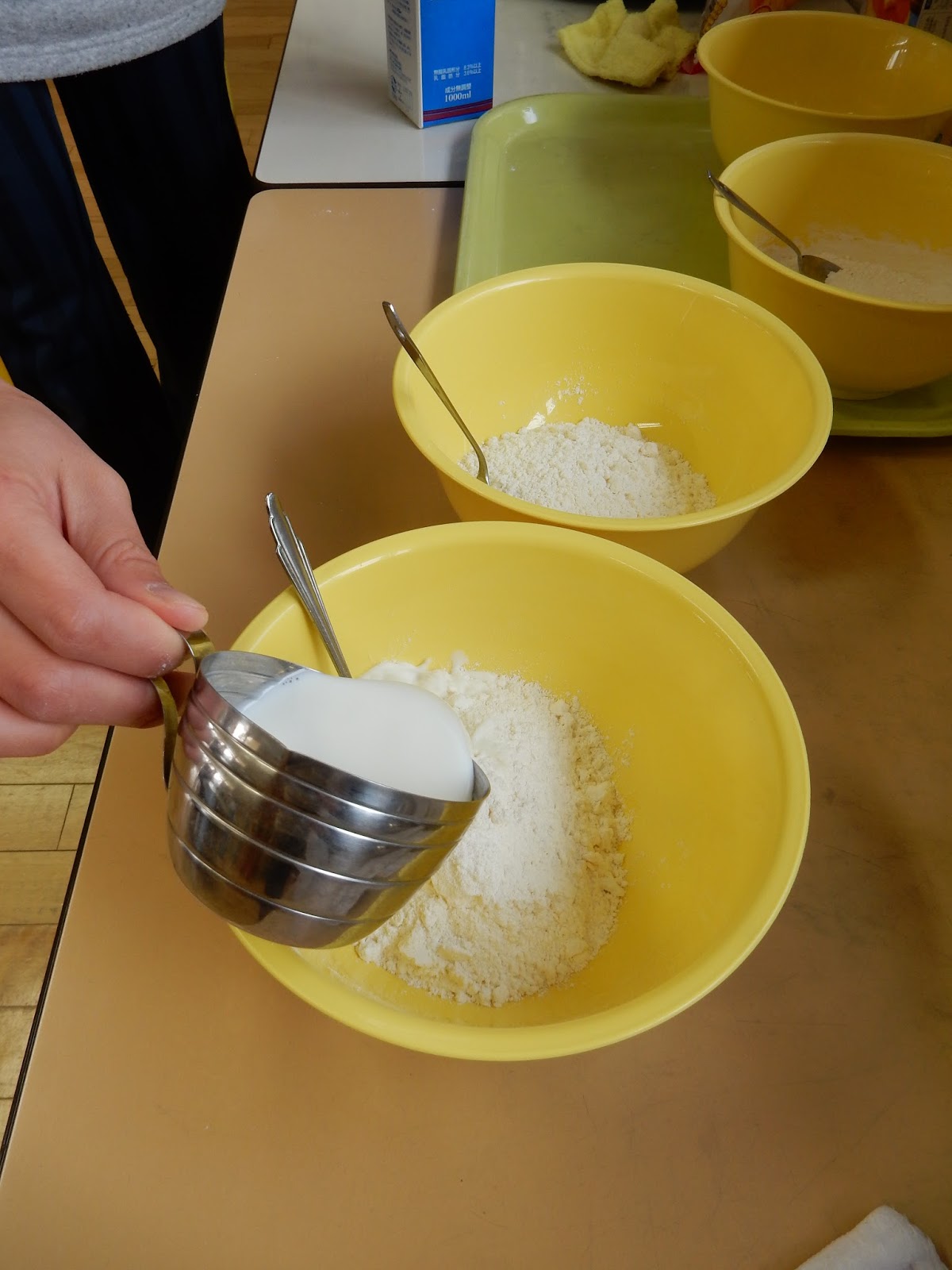 ホットケーキミックスに牛乳を加えたら、みんなで順番にまぜまぜ…