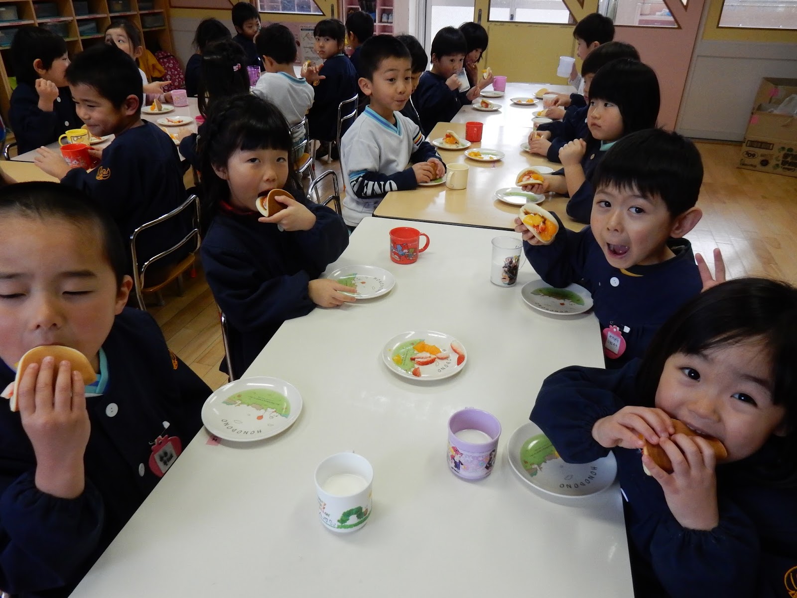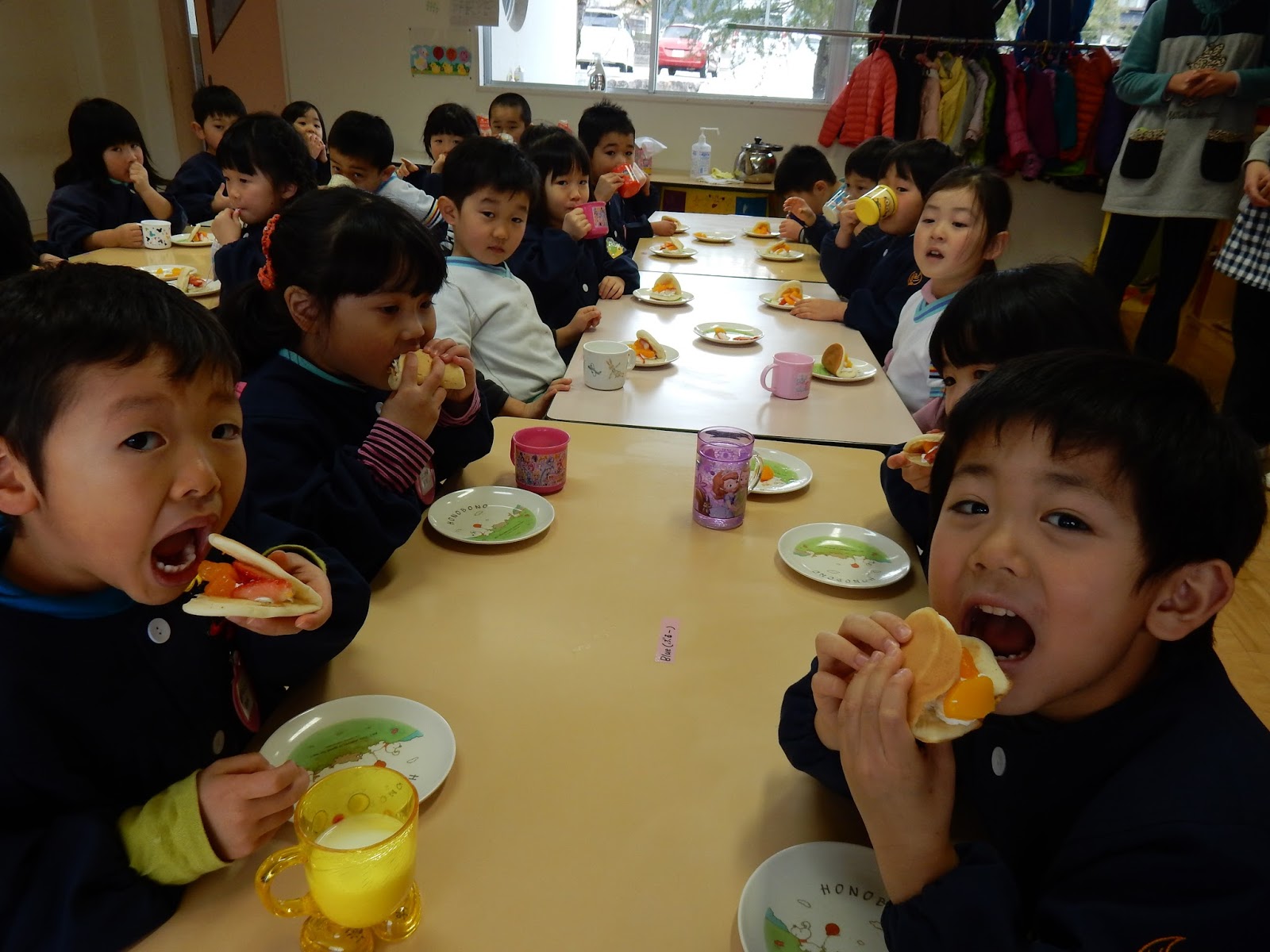 みんな揃っていただきます!!あっという間に完食!まだまだ食べたそうなみんな(笑)残っていたワッフルを、仲良く分けて食べたんですって♪