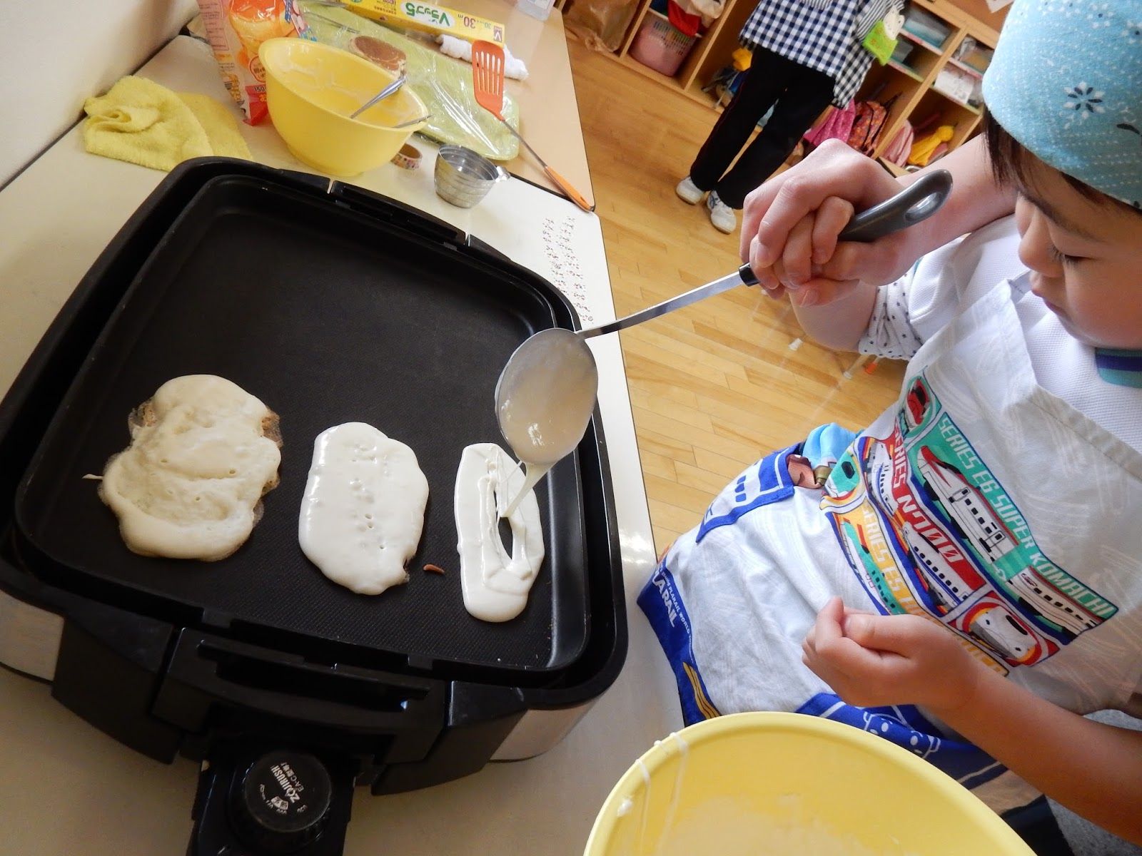 『1,2,3,4,5』と数を数えながら交代しました。グループのお友達が支えていてくれると混ぜやすいね!おいしくなぁれ~。