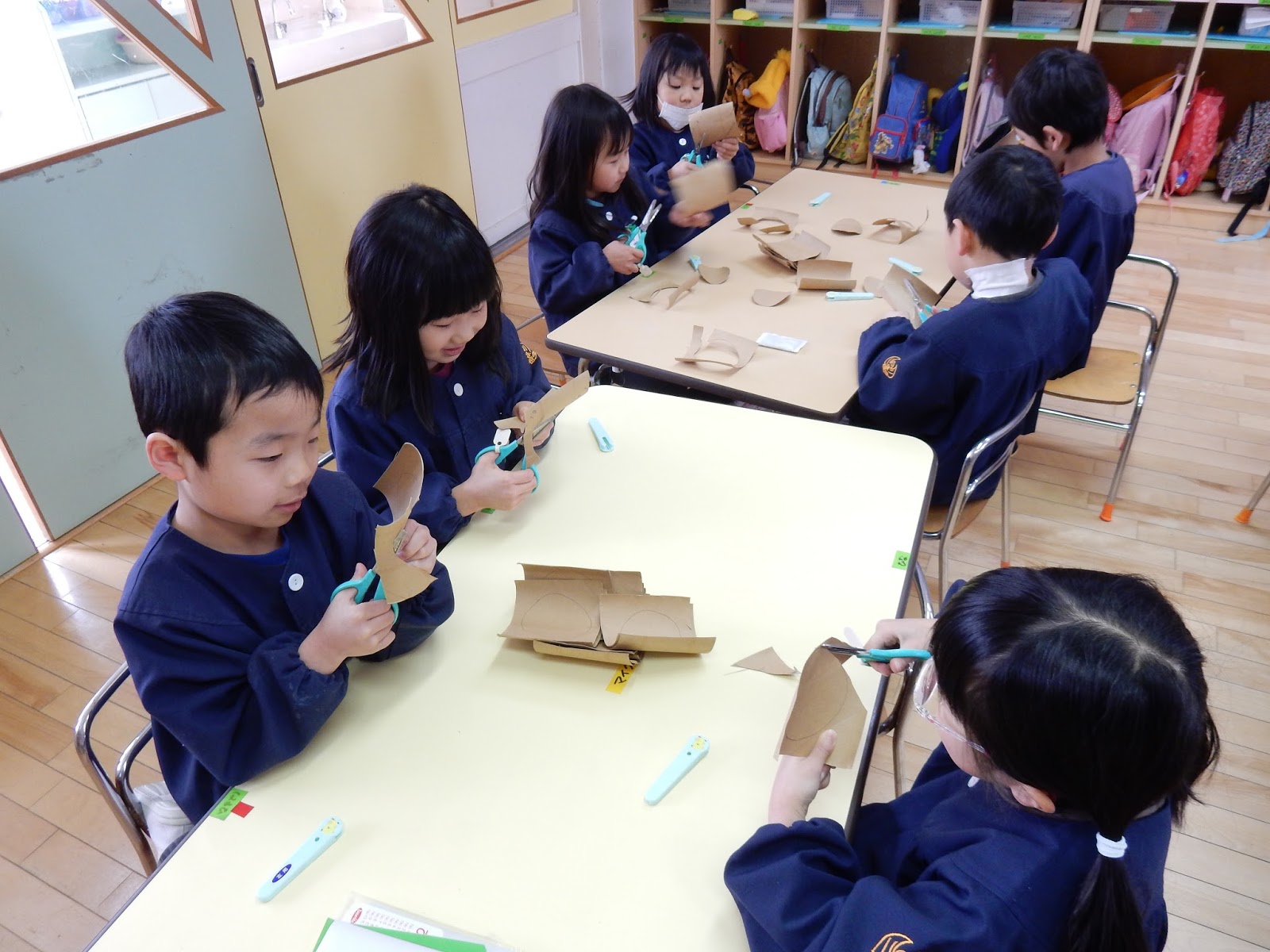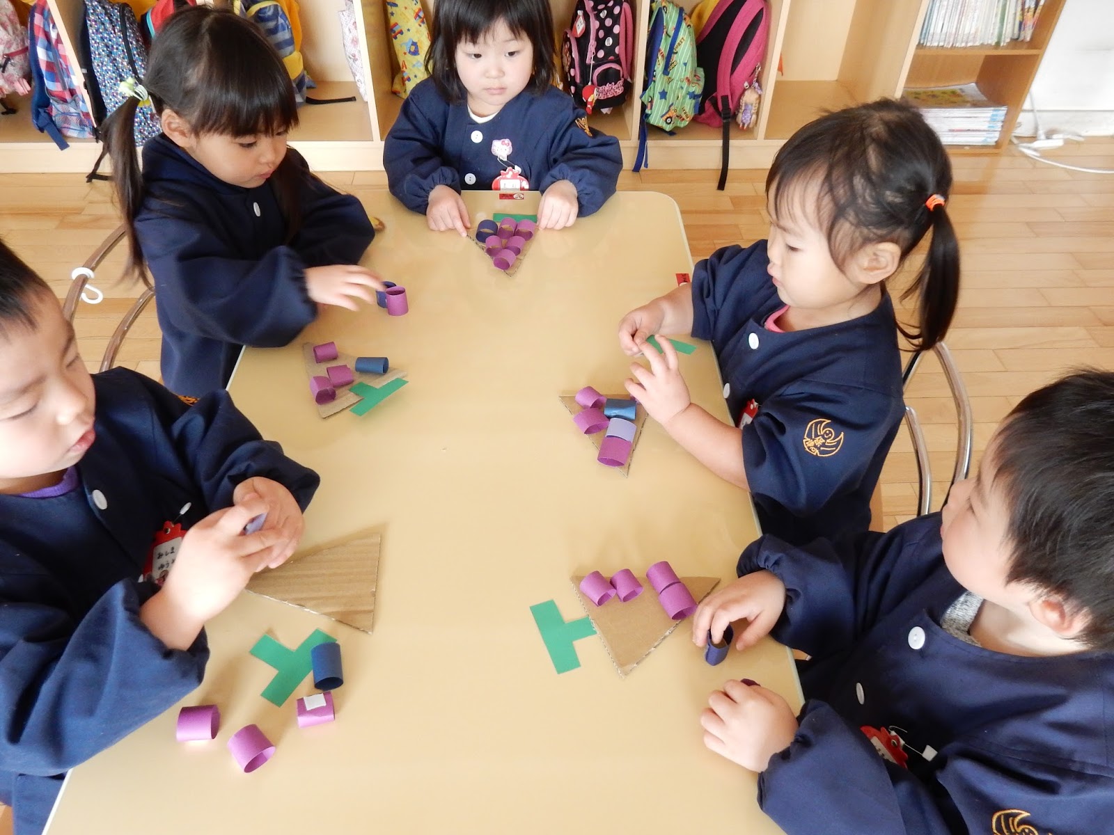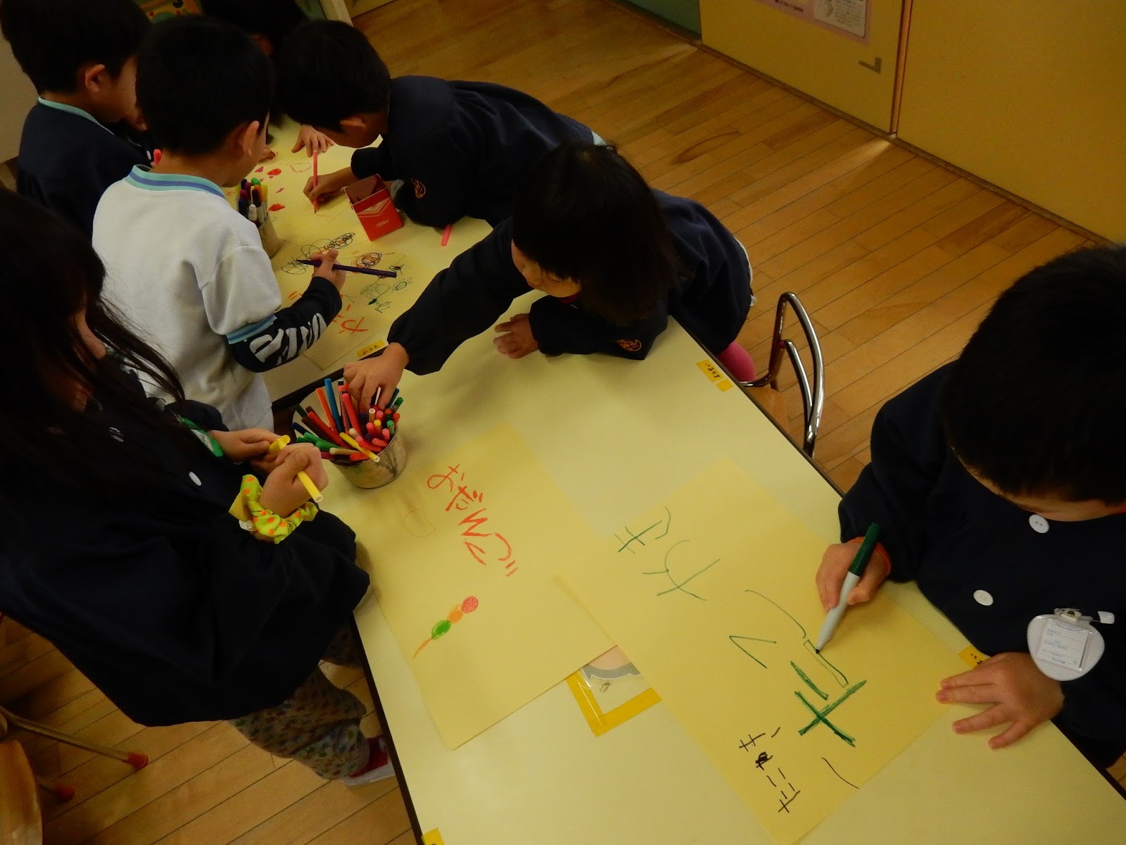 先週、お店屋さんごっこに向けて話し合いをしました。4種類のお店が決まったんですが、今日は、グループに分かれて開店準備をしました。