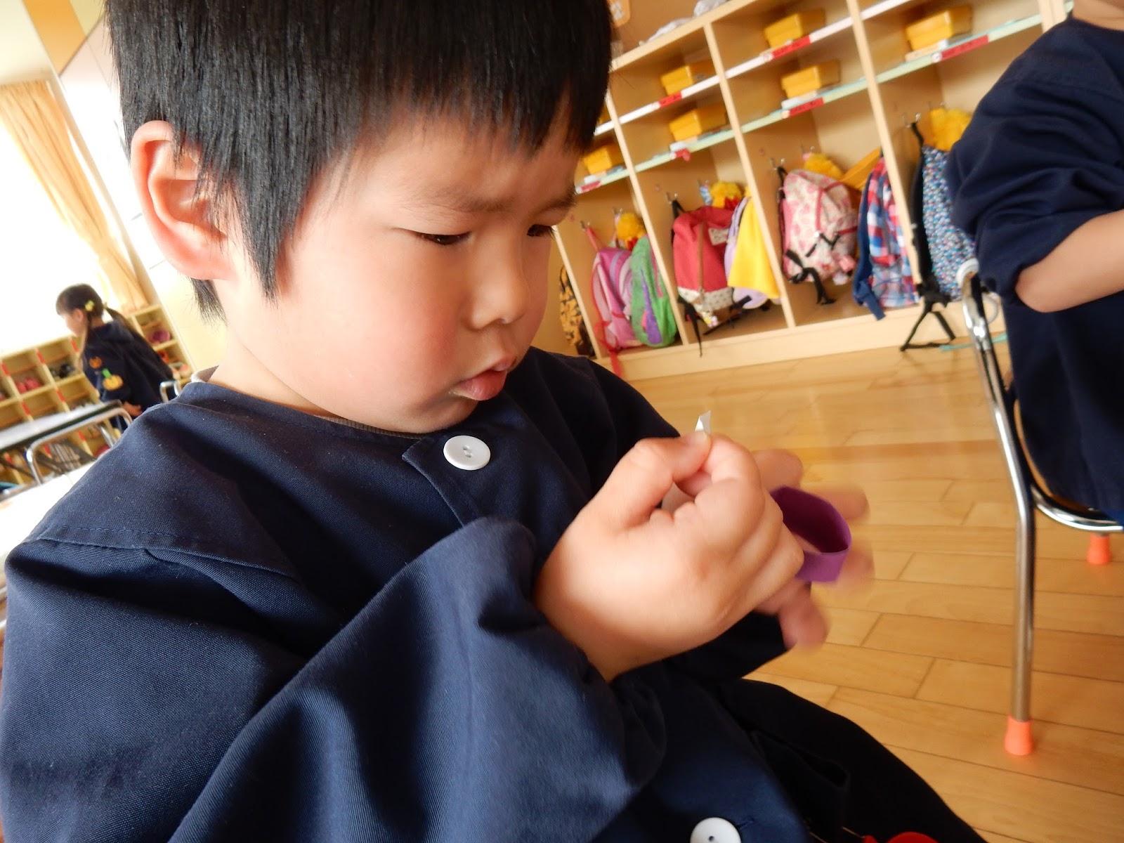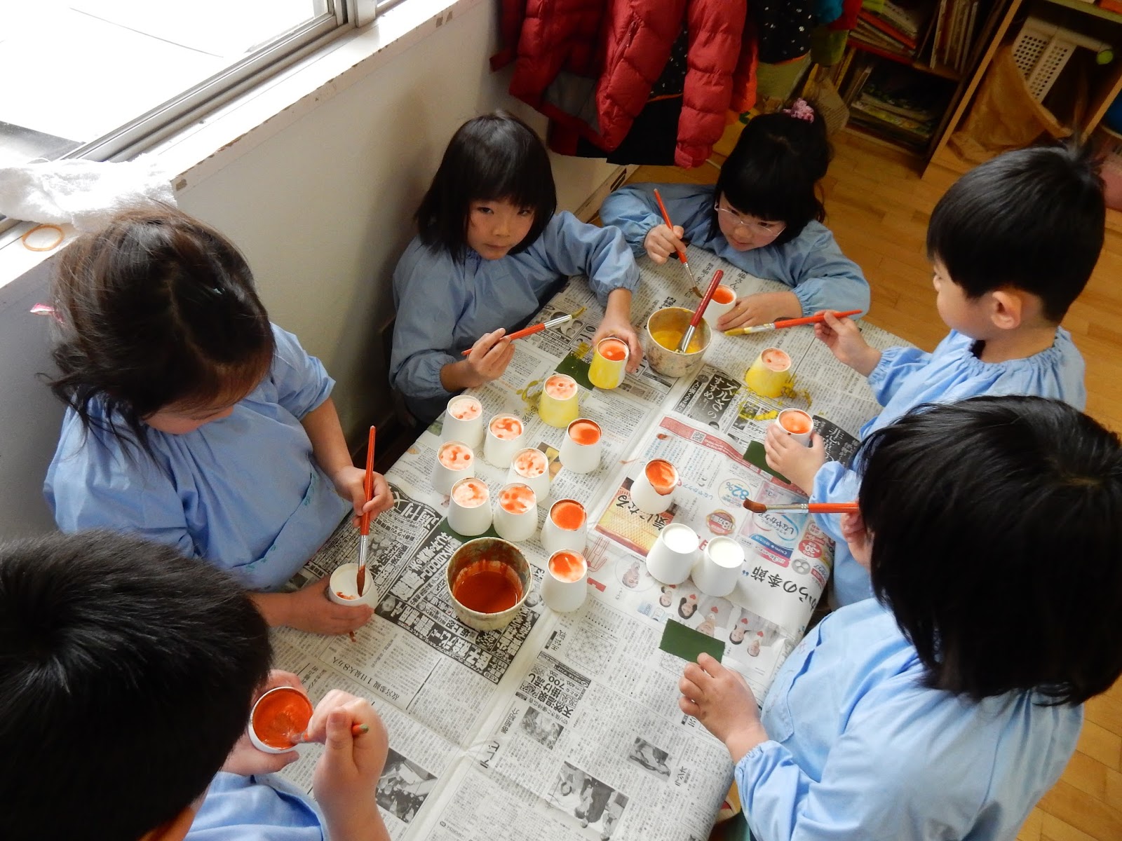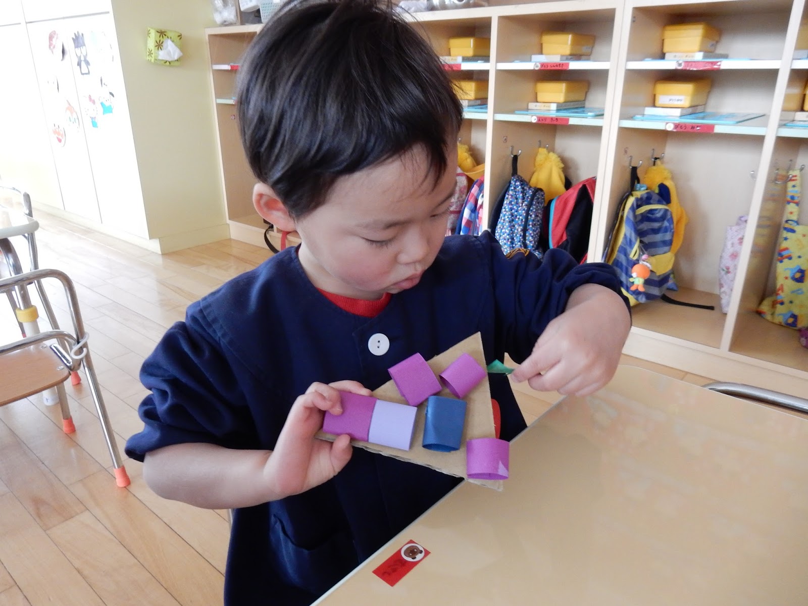 先週、お店屋さんごっこに向けて話し合いをしました。4種類のお店が決まったんですが、今日は、グループに分かれて開店準備をしました。