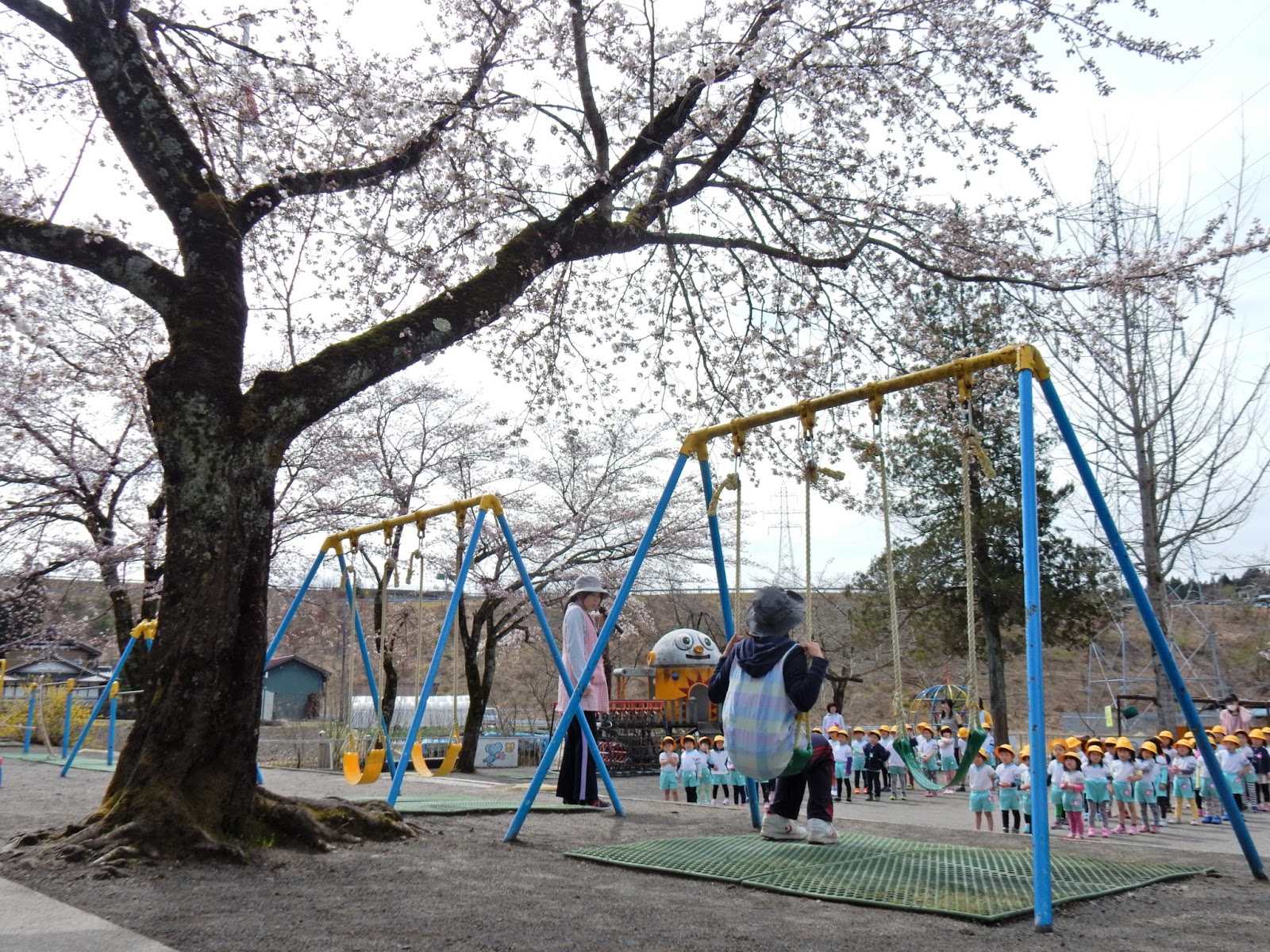 今日は、新学期という事で、園庭の遊具の使い方をおさらいしました。みんなが、安全に、怪我なく遊べるように、先生たちが、使い方の見本を見せてくれました。ブランコは立たない、すべり台の逆走は危ないよ!など、お約束をしました。