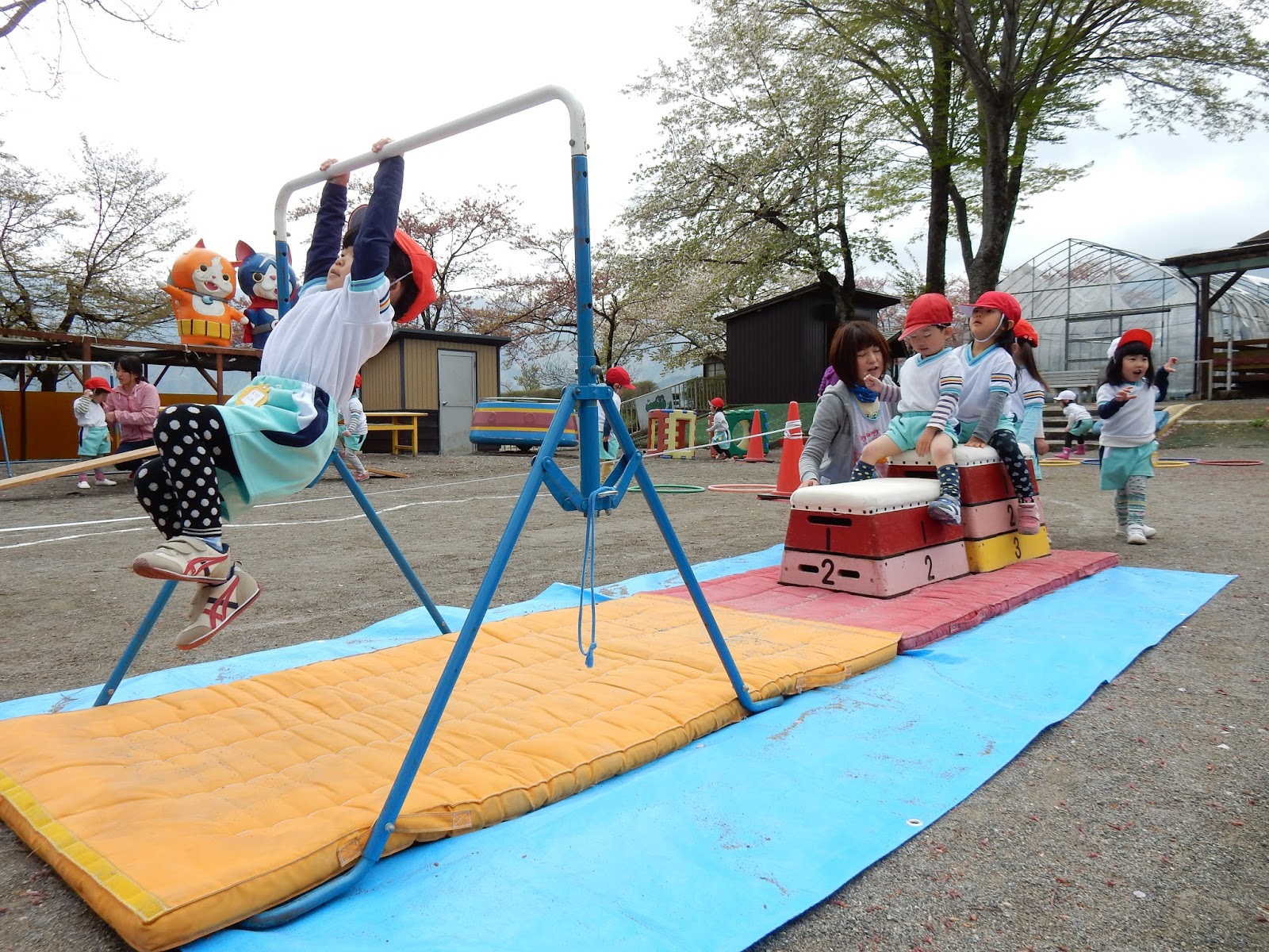 ひまわりさんは、3人組や、6人組での準備運動。2人組の延長です。話をしっかり聞き、指示を正確に理解し、役割を分担して運動をします。これは組立体操を意識しての事。運動会は10月ですが、取り組みはすでに始まっています!楽しく、力をつけていきます。年齢に合わせてサーキットの内容も変わり、年長さんは高度な事もたくさん挑戦しています。『え~!!なにこれ!?』子どもたちの様子を見ながらコースがどんどん変わっていくので、あきることなく楽しめます。難しそうに見える事も、出来たときはとっても嬉しいですよね!自信をつけていきます。