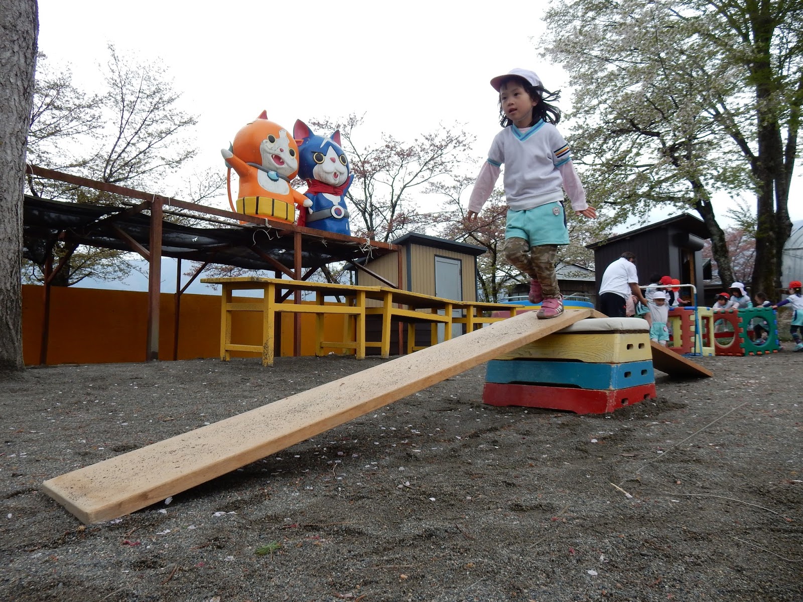 今日のようにお天気の良い日は園庭で、雨の日は、白鳥の町民体育館に出掛けて遊んできます。面白くって、スポーツができるゴロゴロ先生のことがみんな大好き♪みんなの人気者です!