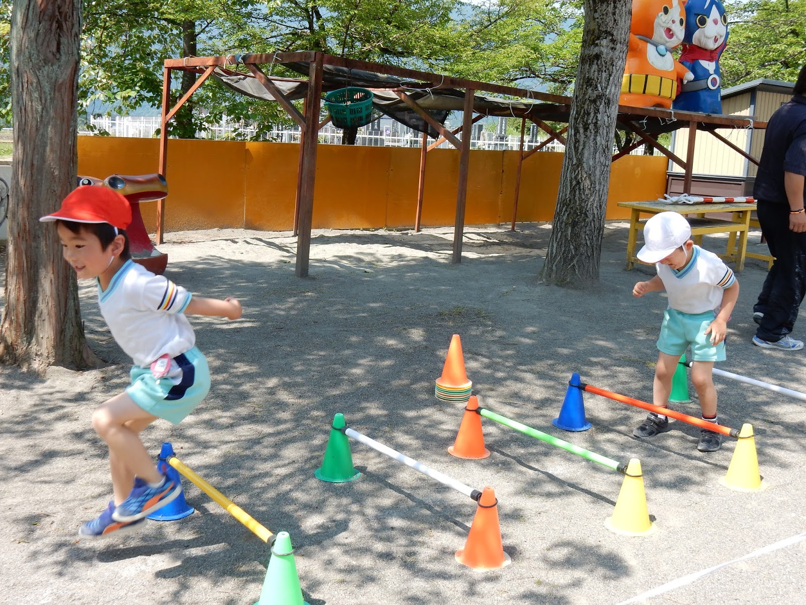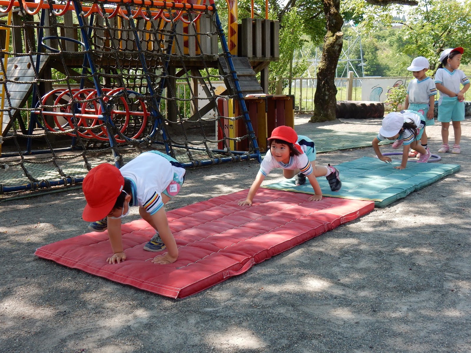 そのほかにもたくさんの器具を使ってのサーキット、年齢に合わせて、どんどん道が変化していきます。いろんな器具に挑戦する子ども達。たくさん走って、いっぱい汗をかきました。