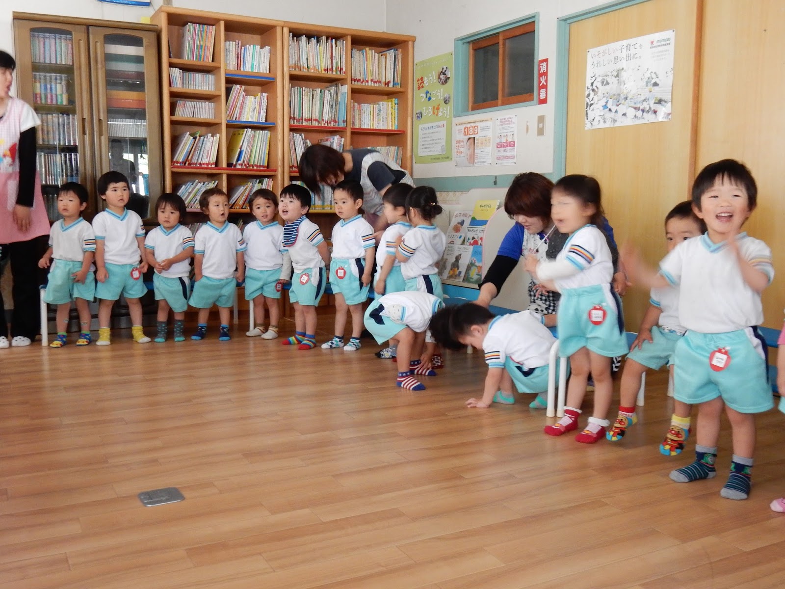 お誕生日会の最初には、みんなで歌をうたっています。今月の歌は、『おつかいありさん』でした。“あっちいってチョンチョンこっちいってチョン♪”振り付きで歌ってくれたすみれさんとひよこさん。とっても可愛らしかったですよ!