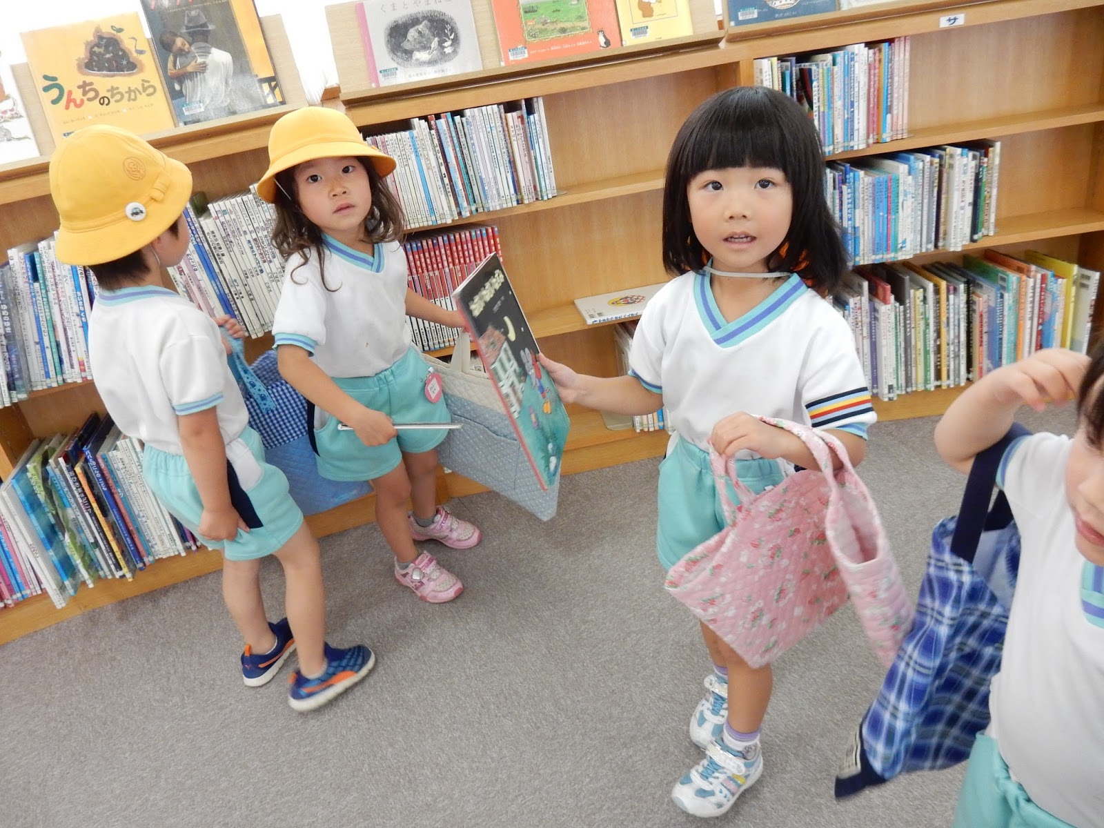 ゆっくり落ち着いて絵本を読んでもらう時間は、子どもたちにとってとっても大切な時間です。これからの時期は、暑い中、体をいっぱい使って遊んだ後のクールダウンにも絵本はピッタリ!字が読めるようになってきた子も、先生や、お母さんたちの声で聞くのはまた違うんですよ~♪本の種類も、様々。きっとみんな大好きな1冊があるんじゃないでしょうか。絵本を読んで、不思議だなぁと創造力を膨らませたり、こんな事があるんだ~と新しい発見が出来たり、本を通してお子さんとの触れ合いを楽しんでくださいね♪
