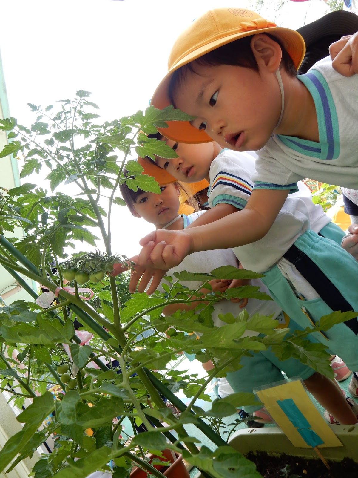 今日採れたのは3つ。でも、まだまだこれから大きくなりそうなピーマンが一杯ついています。金曜日には、初めてのピーマンでクッキングですって!楽しみですね♪