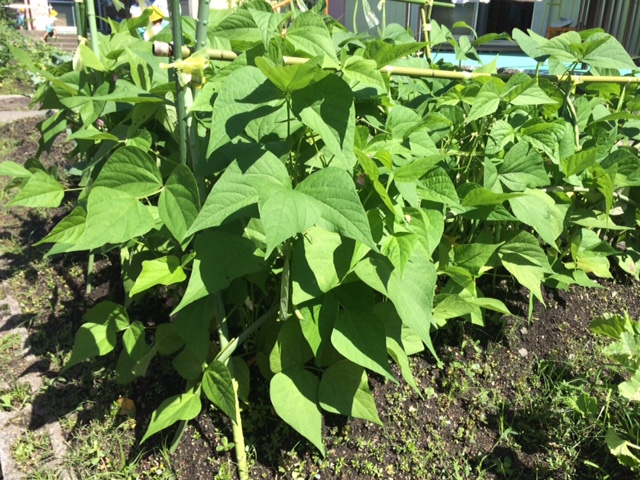 4月、種まきから始まったインゲン栽培、大きく成長しました!!