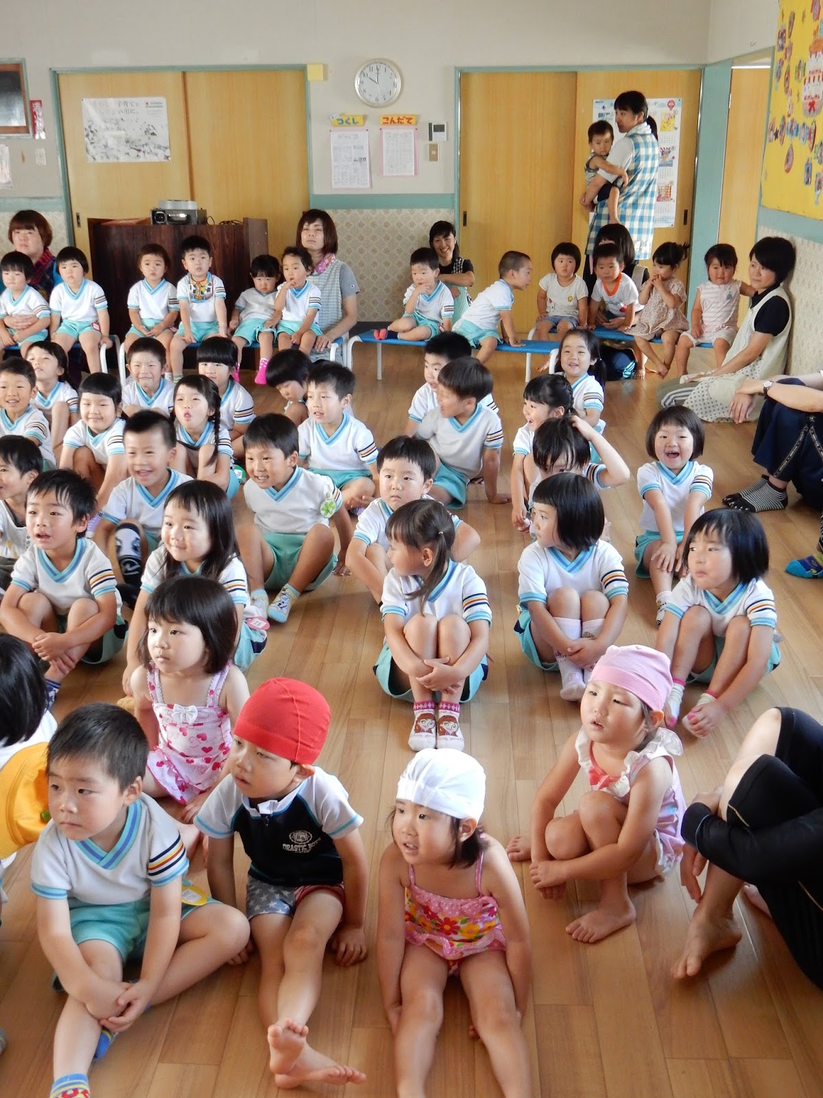 お部屋で歌っていたお歌をみんなで元気に歌います。振りつけ付きのたなばたさまのお歌、『小さい子もとっても可愛らしく踊りながら口ずさんでいました。