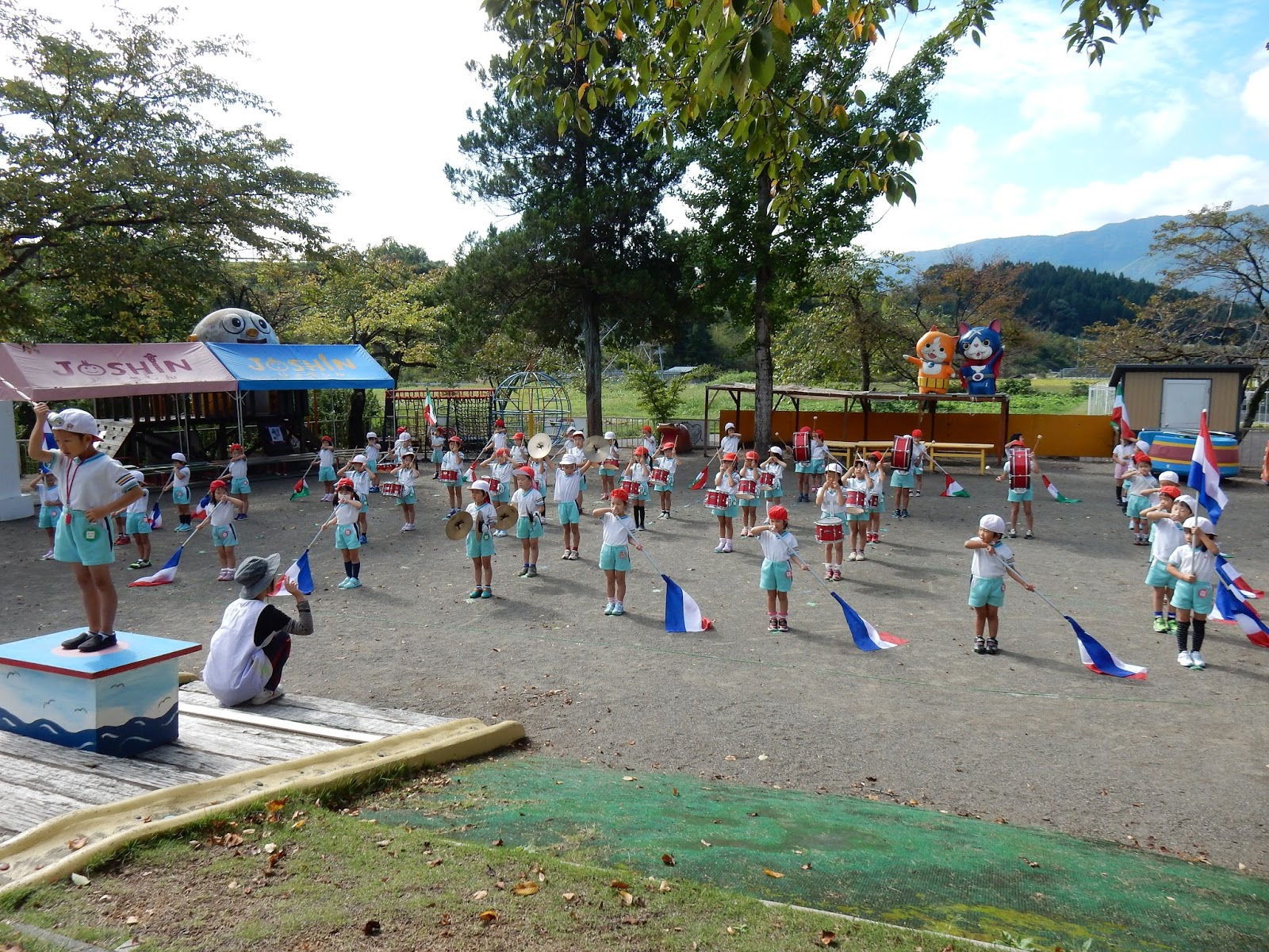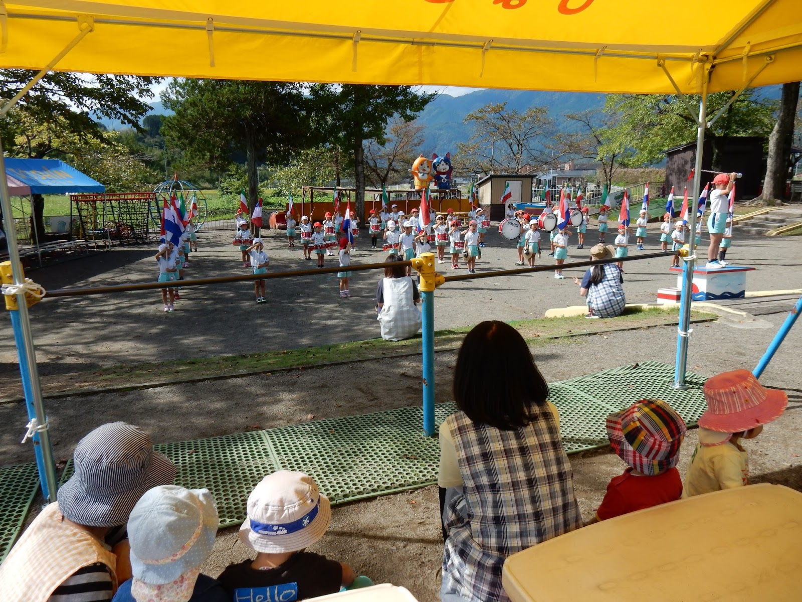 9月後半は、台風などの影響で本当に天気に振り回されました。鼓隊の慰問がなかなかできなかったり、運動会練習も、会館でしかできない日が続きました。