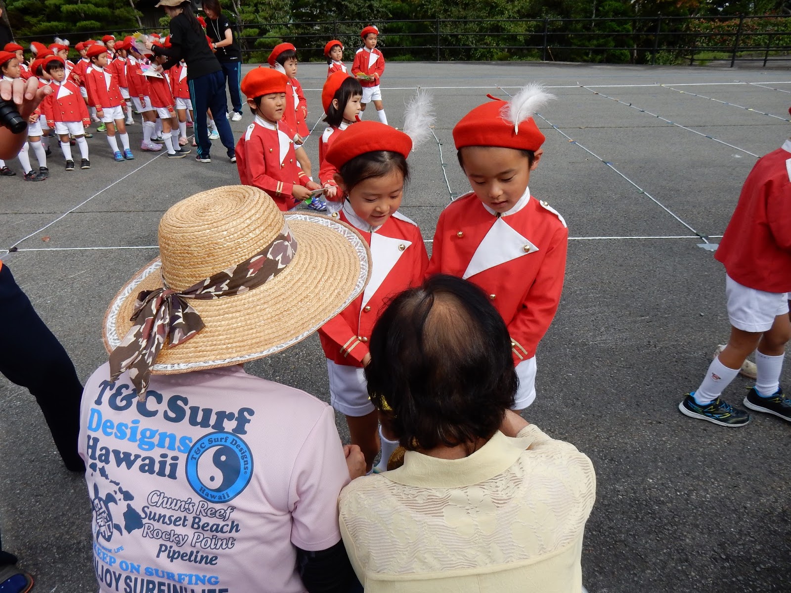 毎回、ロープを引っ張って、場所を確認しながら隊形移動をするんですが、周りの環境が変わったり、向きが変わったり。会場のスペースの関係で入場の仕方が変則的だったりと、同じようにはいかないので、小さなハプニングはつきもの。それでも、そんな状況の中でもやりきってくれる子ども達。『かわいいなぁ』 『ありがとうね~』と、おじいさん、おばあさんも喜んでくださいます。