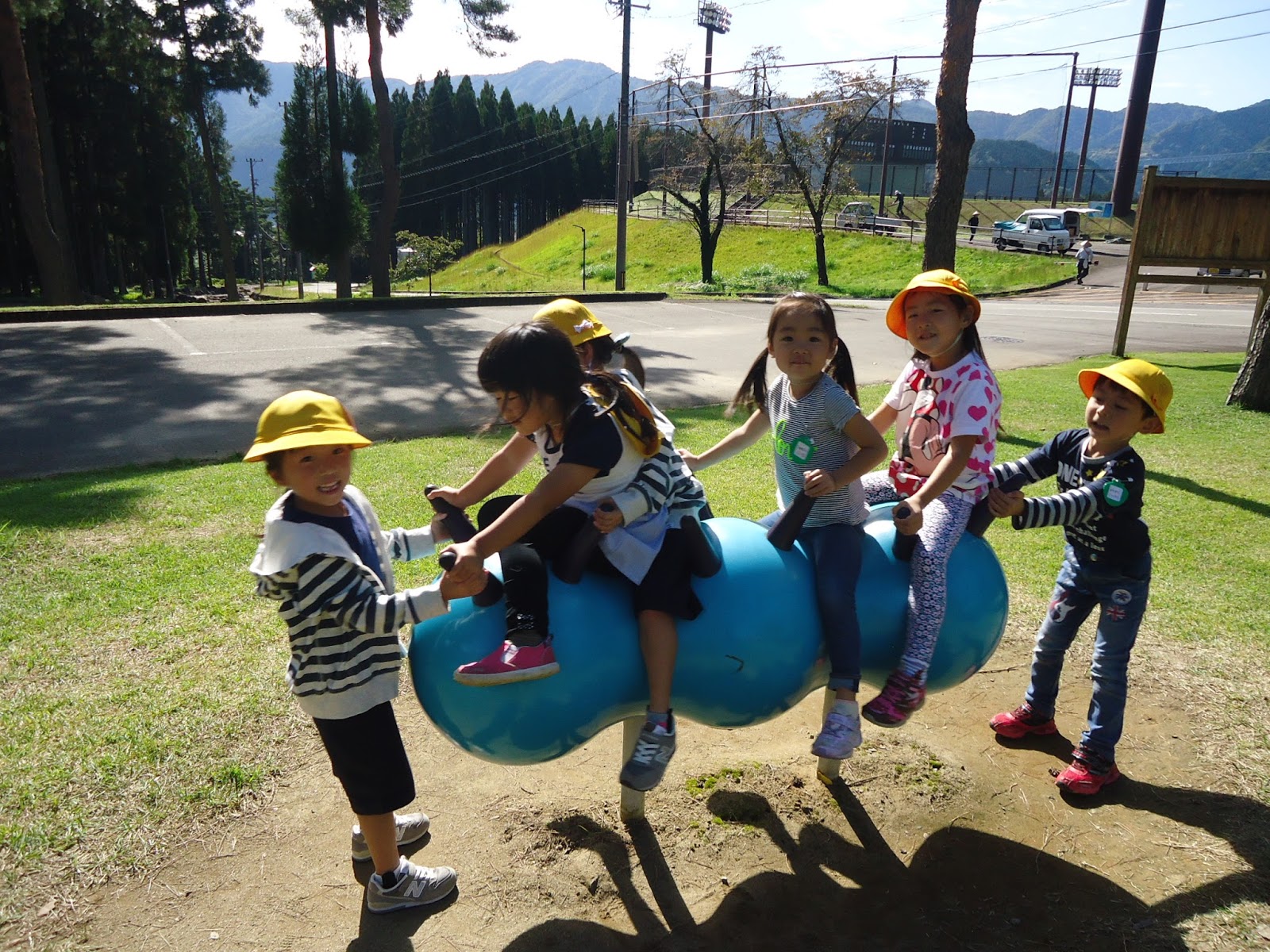 この後、中学校の横のなが~い坂道を上り、ゴロゴロ公園まで頑張りました!