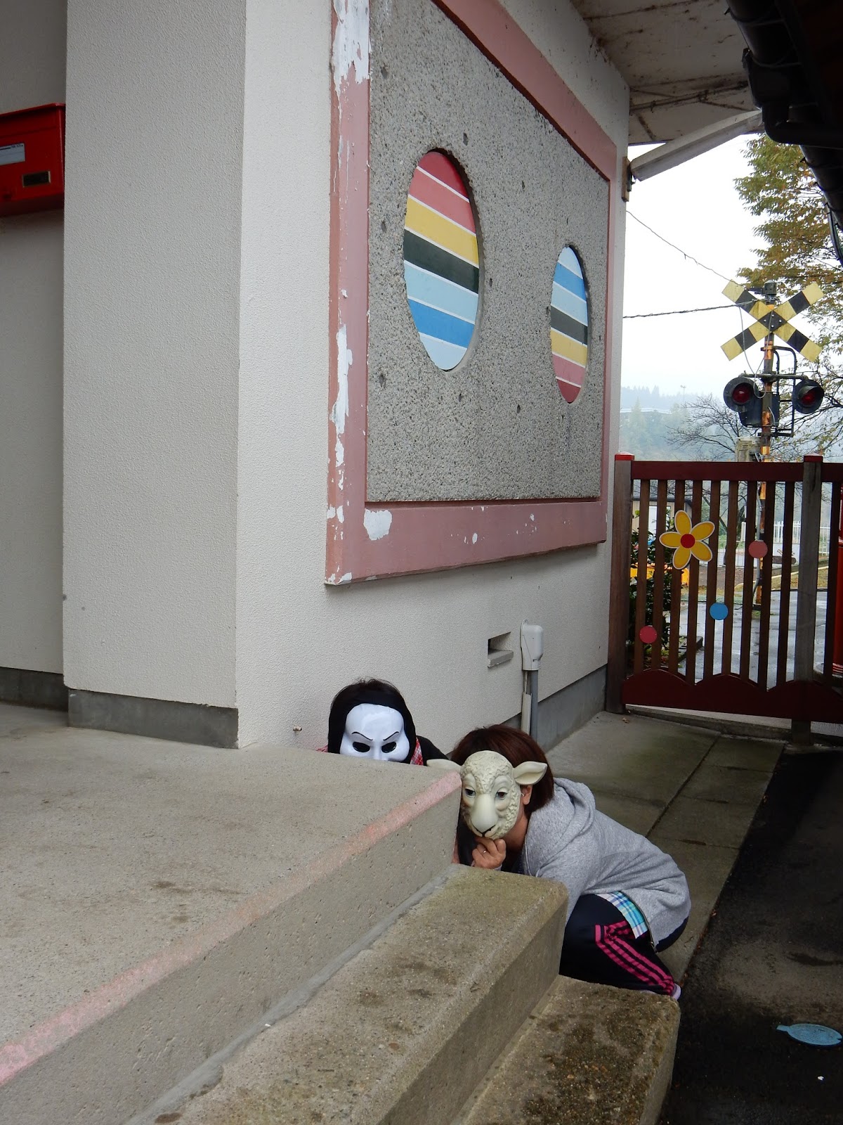 かわいいオバケの中には…こんなんも混ざっていました(笑)会談の隅からのぞいているこの感じがまた怖い…でも、この先にはお菓子が待っている!!みんなの勇気、素晴らしい!予想外の羊たちで度胸がついたのか、これまた目の前に出されたお菓子パワーか、ホネホネおばけの前では意外と平気な表情のみんなでした(笑)