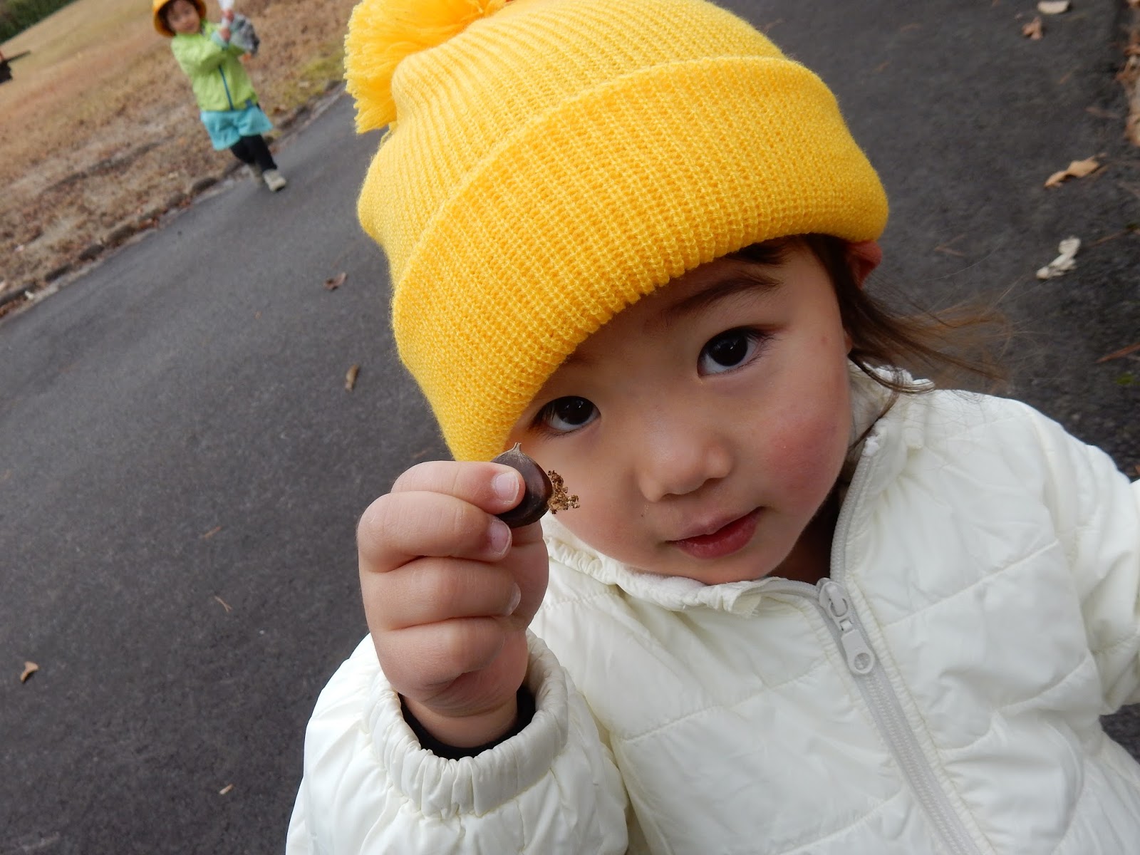 秋ならではの発見もあったみたいですよ!園長先生が採ってくれるのをみんな真剣な表情でまっています。