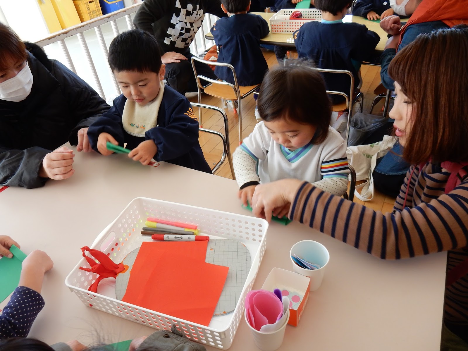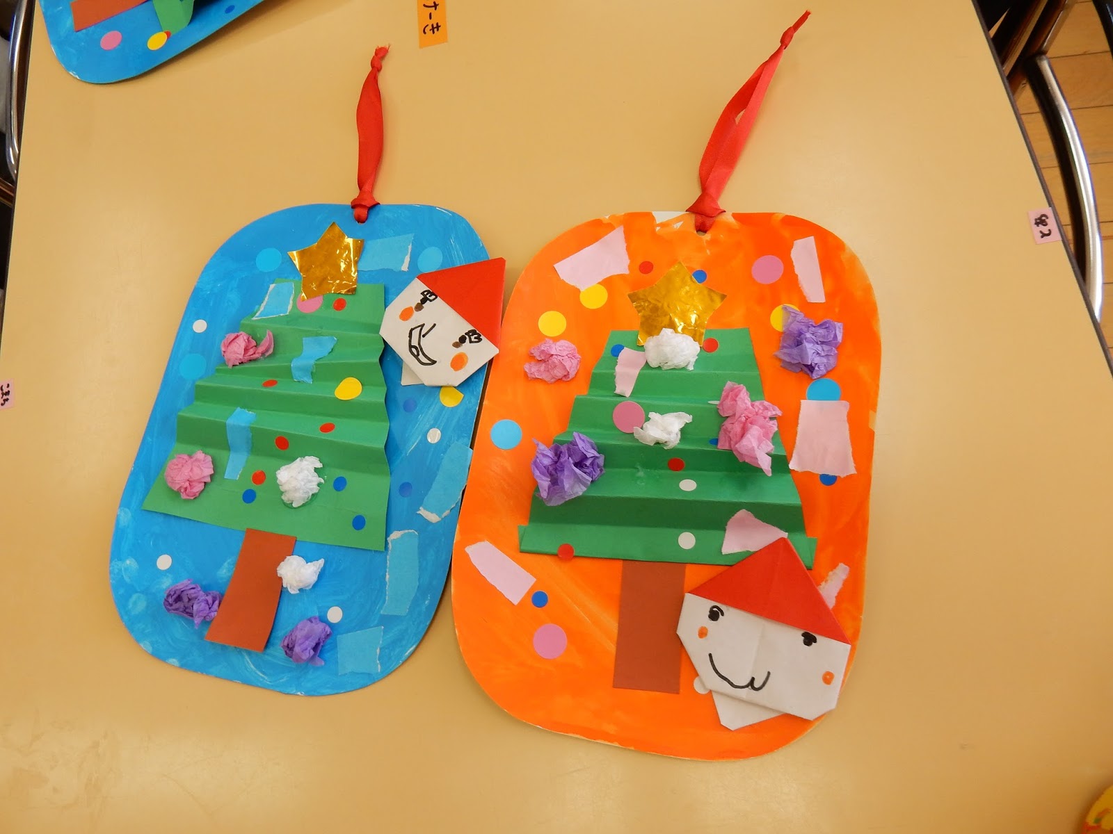 折り紙でサンタさんを折ったり、ツリーにシールを貼ったりしました。