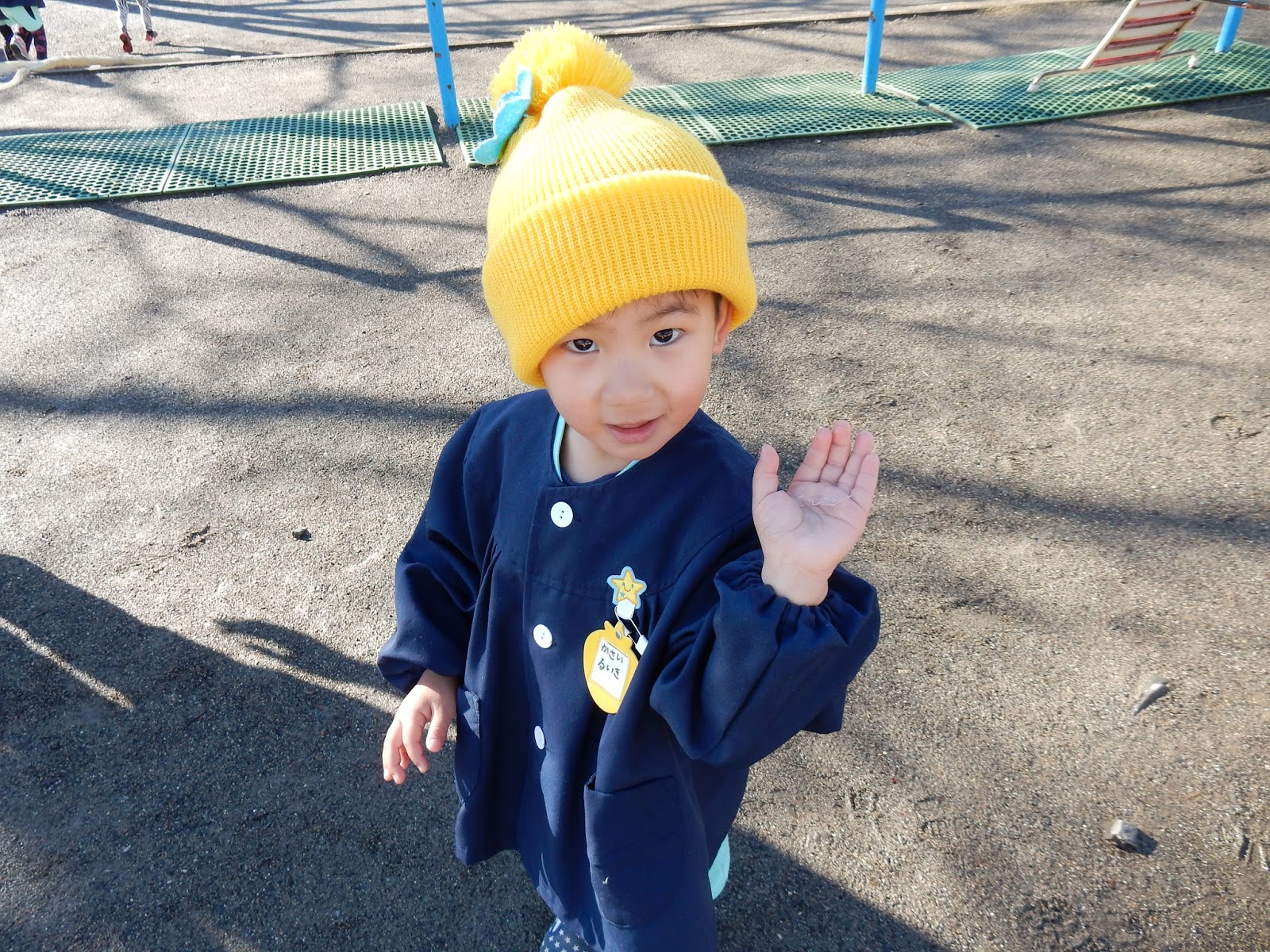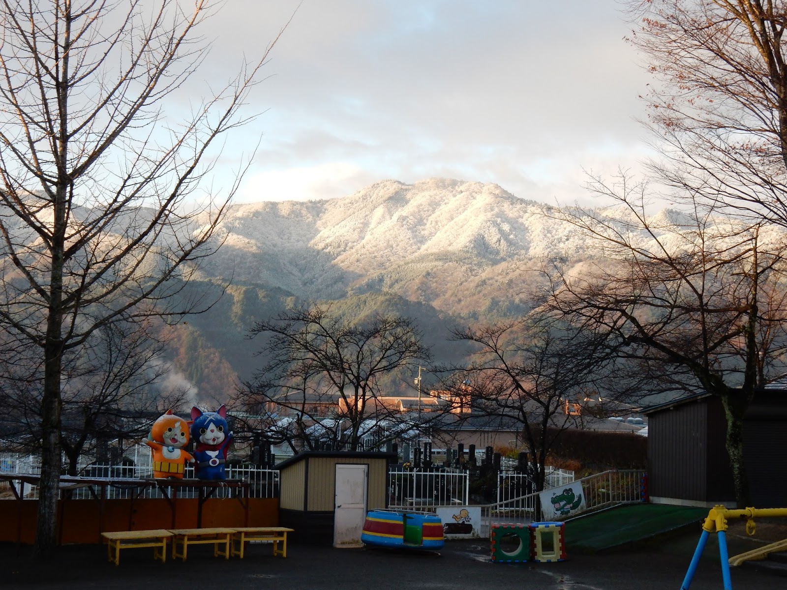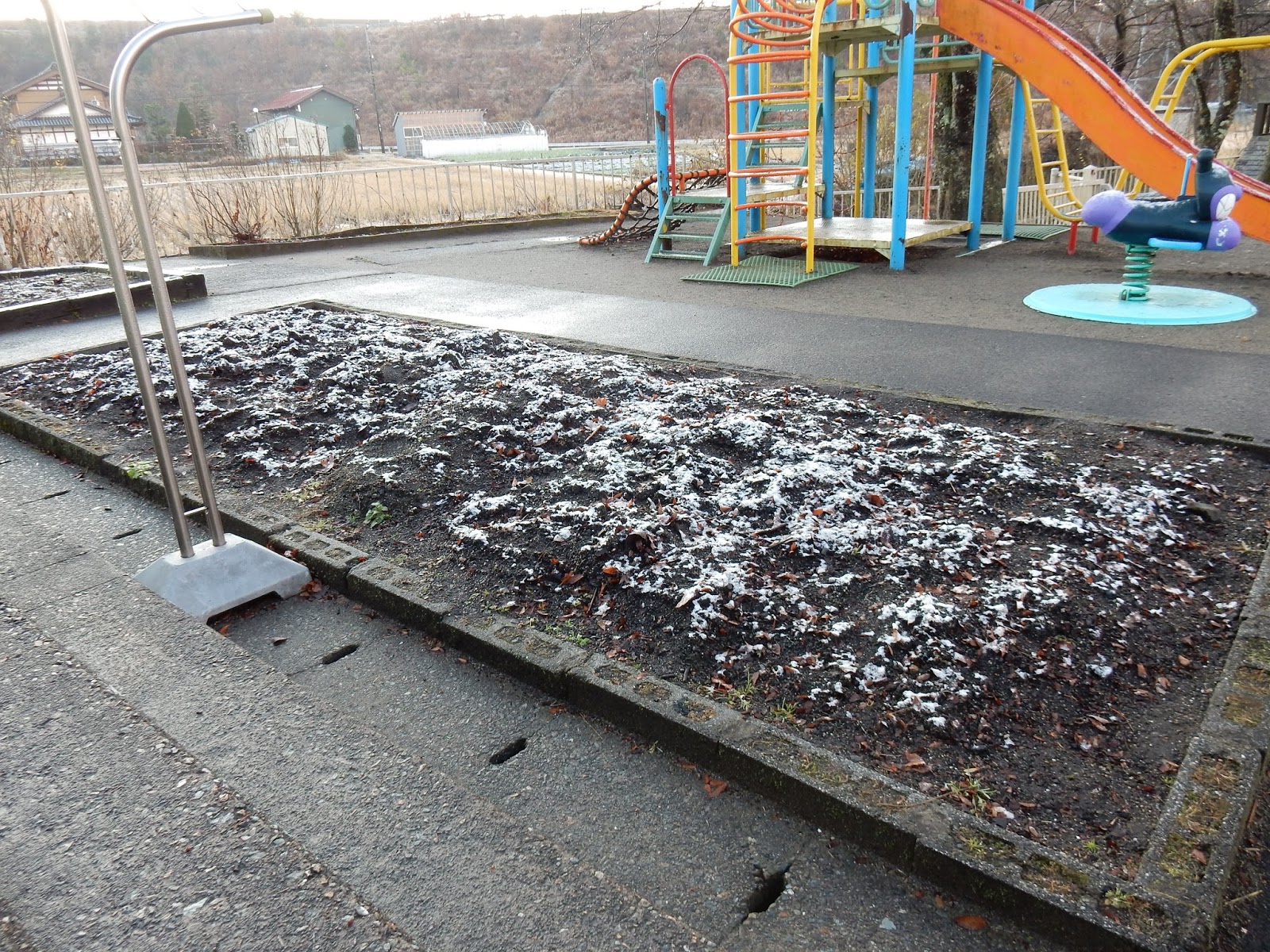 今朝は、園庭の花壇にうっすらと雪が・・・