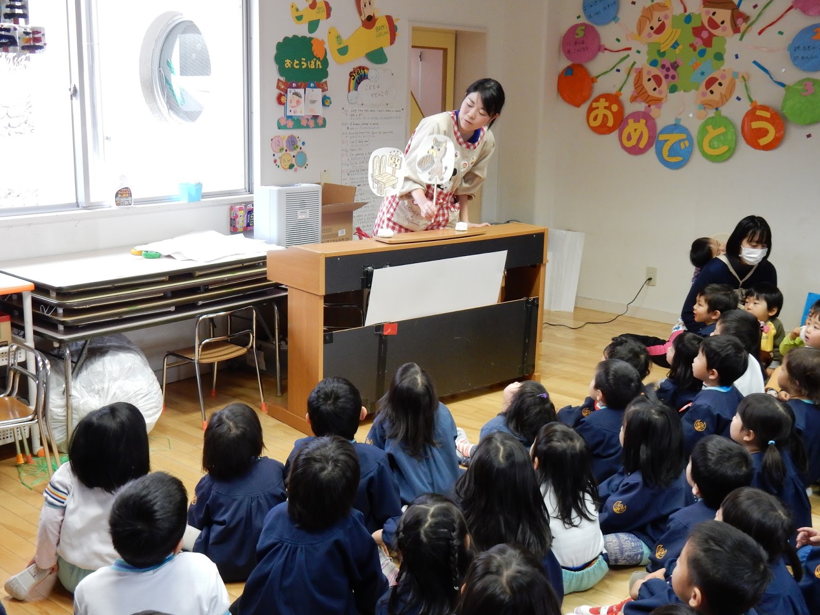 もうひとつのお話は、みんなも知っている絵本のお話の”どうぞのいす”。どうぞ、どうぞ、と動物達が食べた物をどうぞのいすに置いていき・・・ みんなが大好きなお話です!