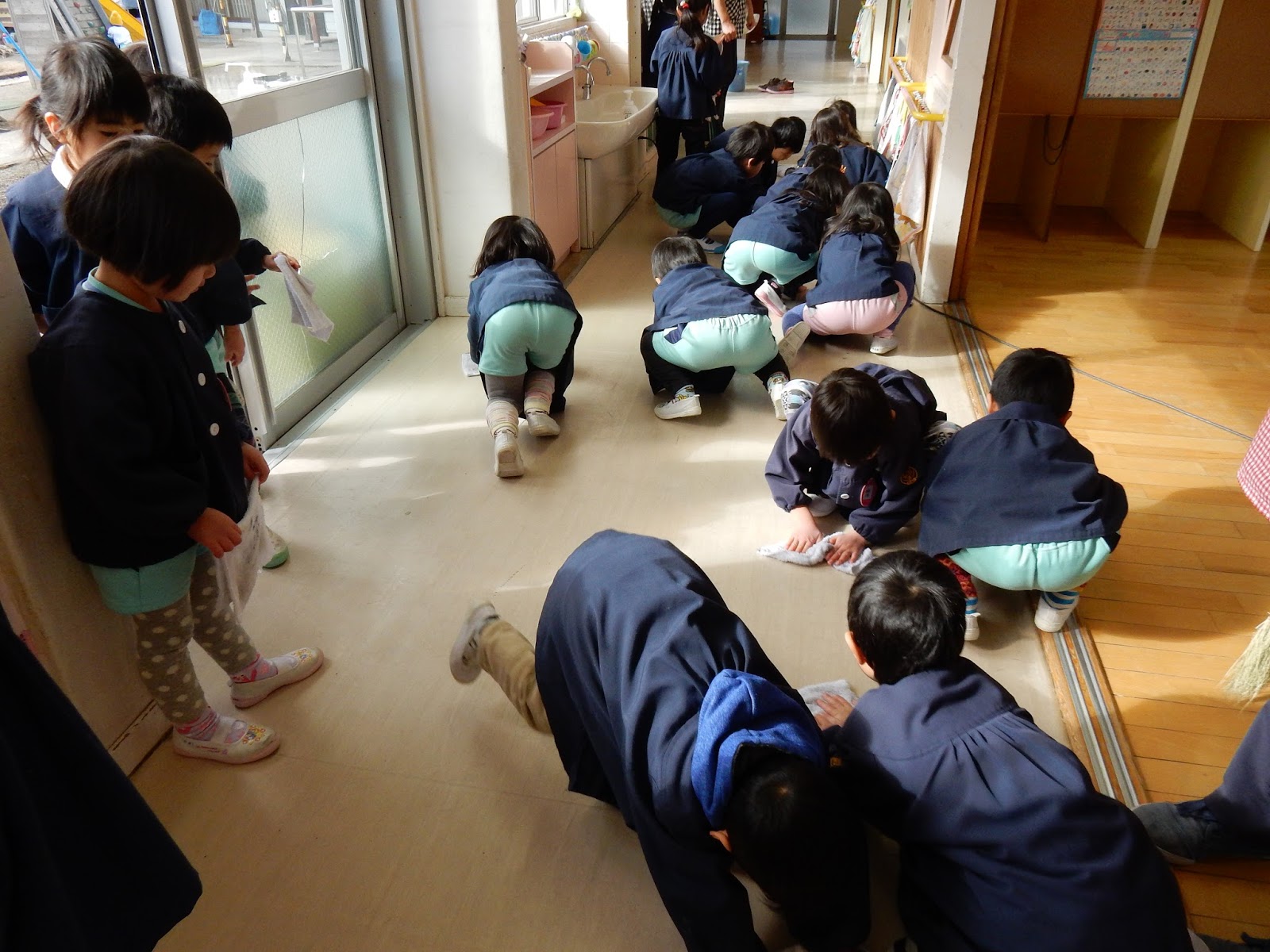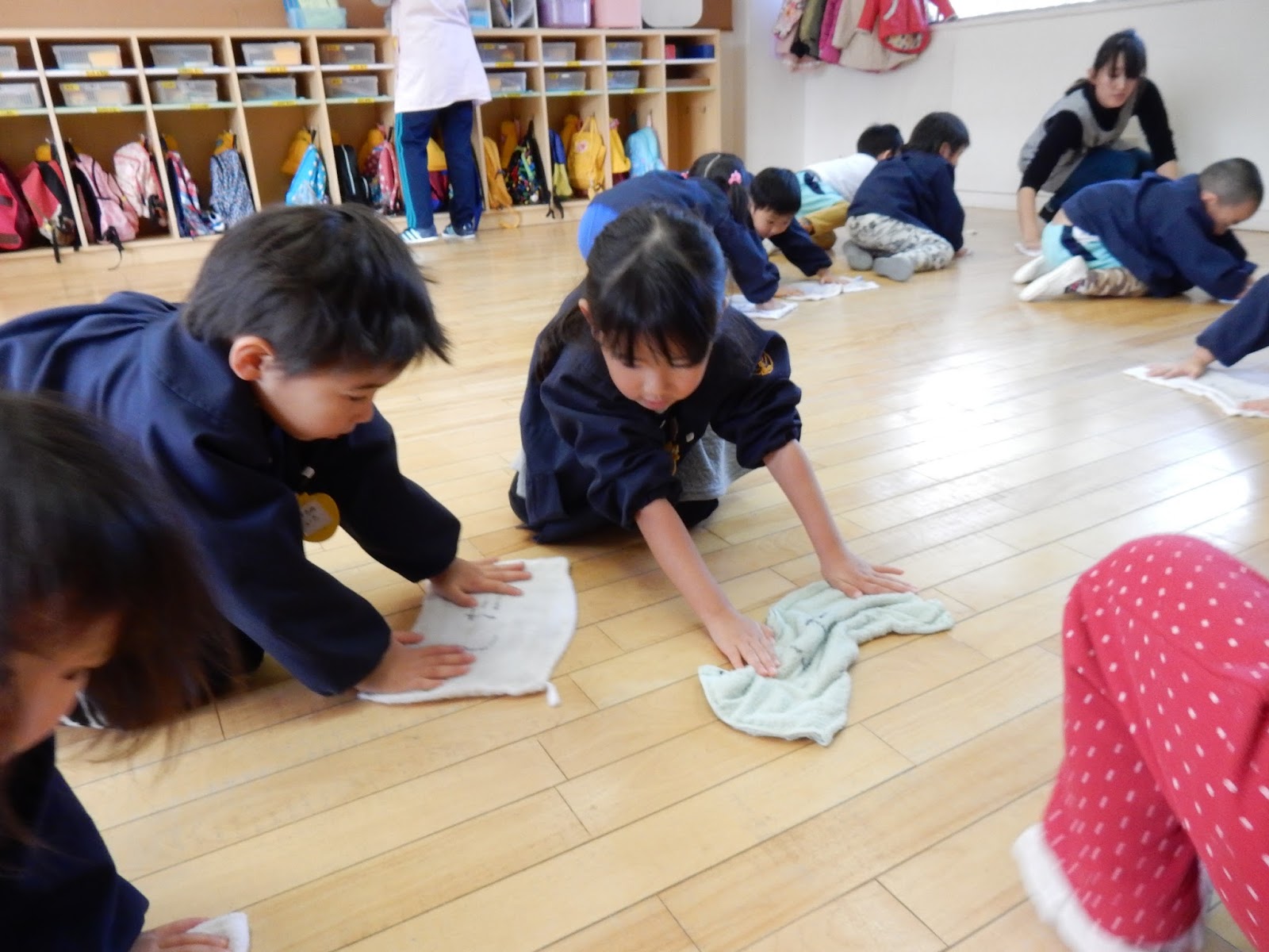 床拭き競走を始めると、みんなチョー張り切って床拭きをしました!