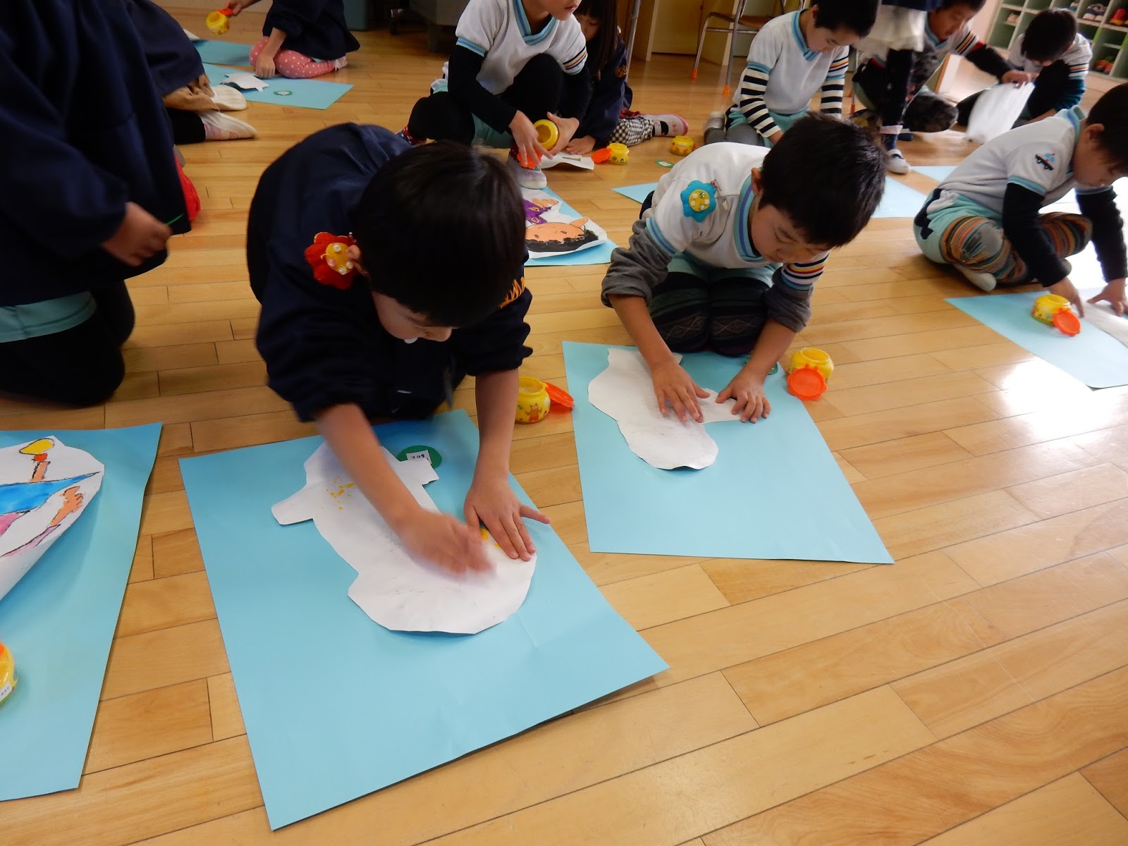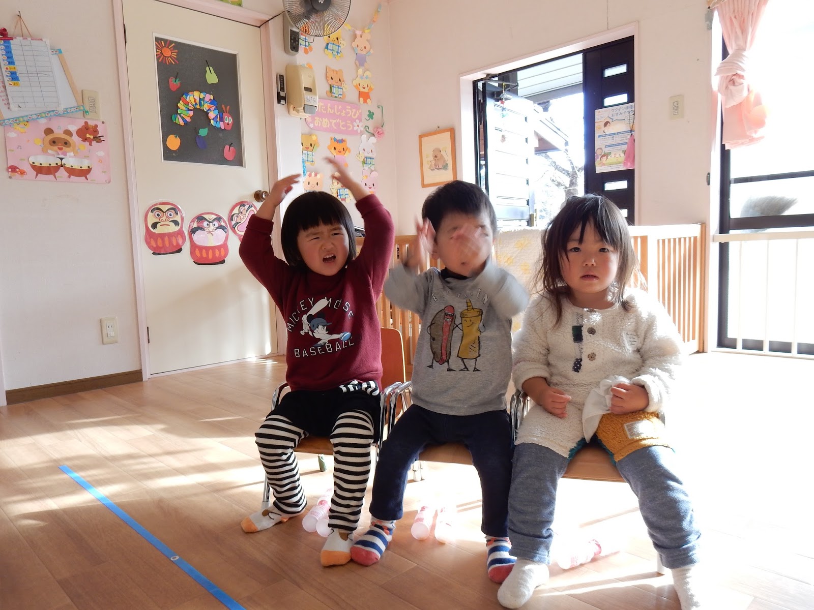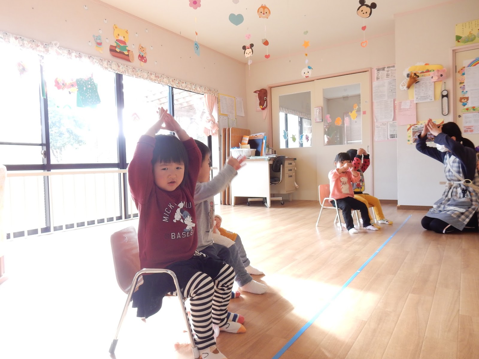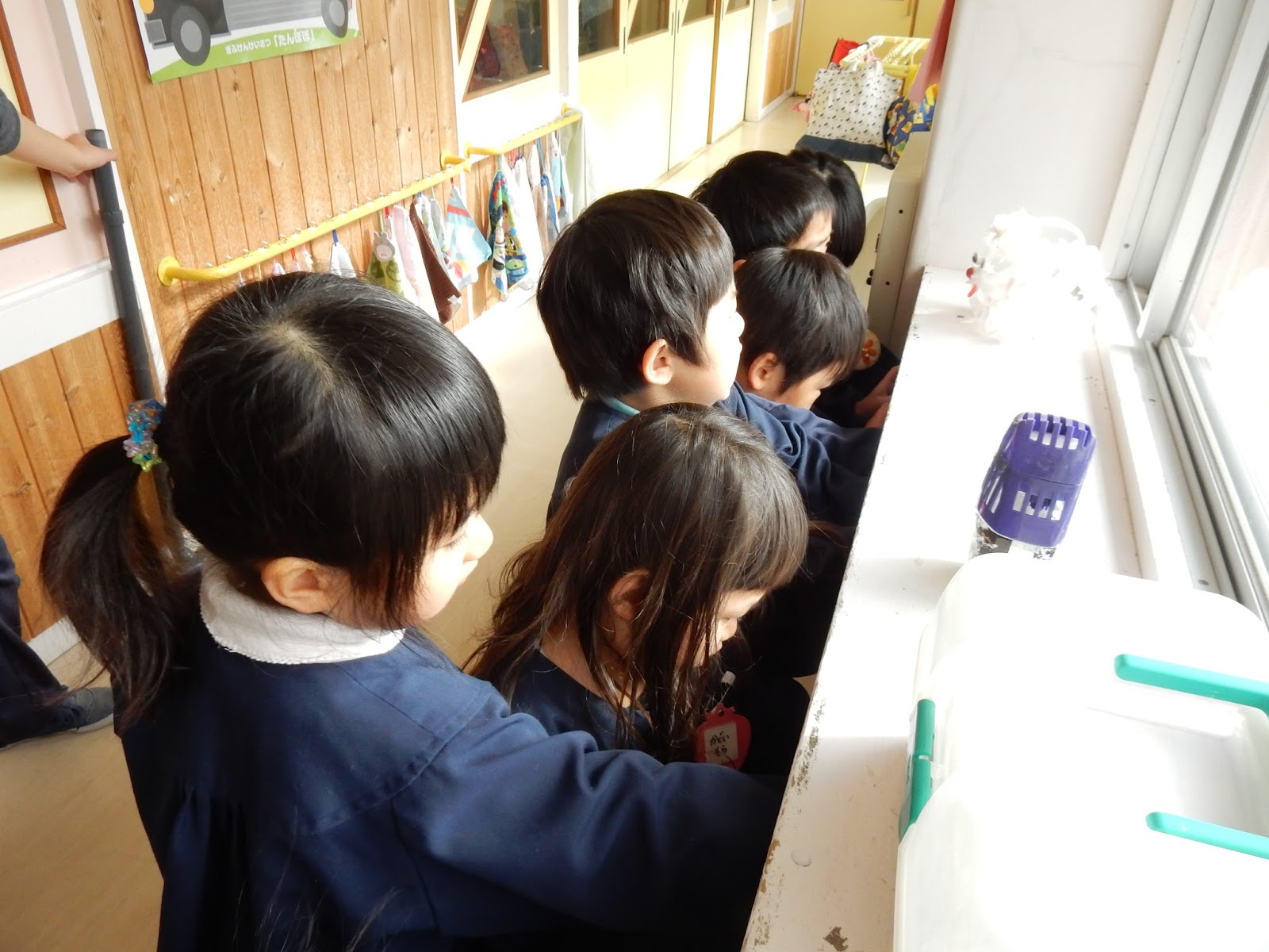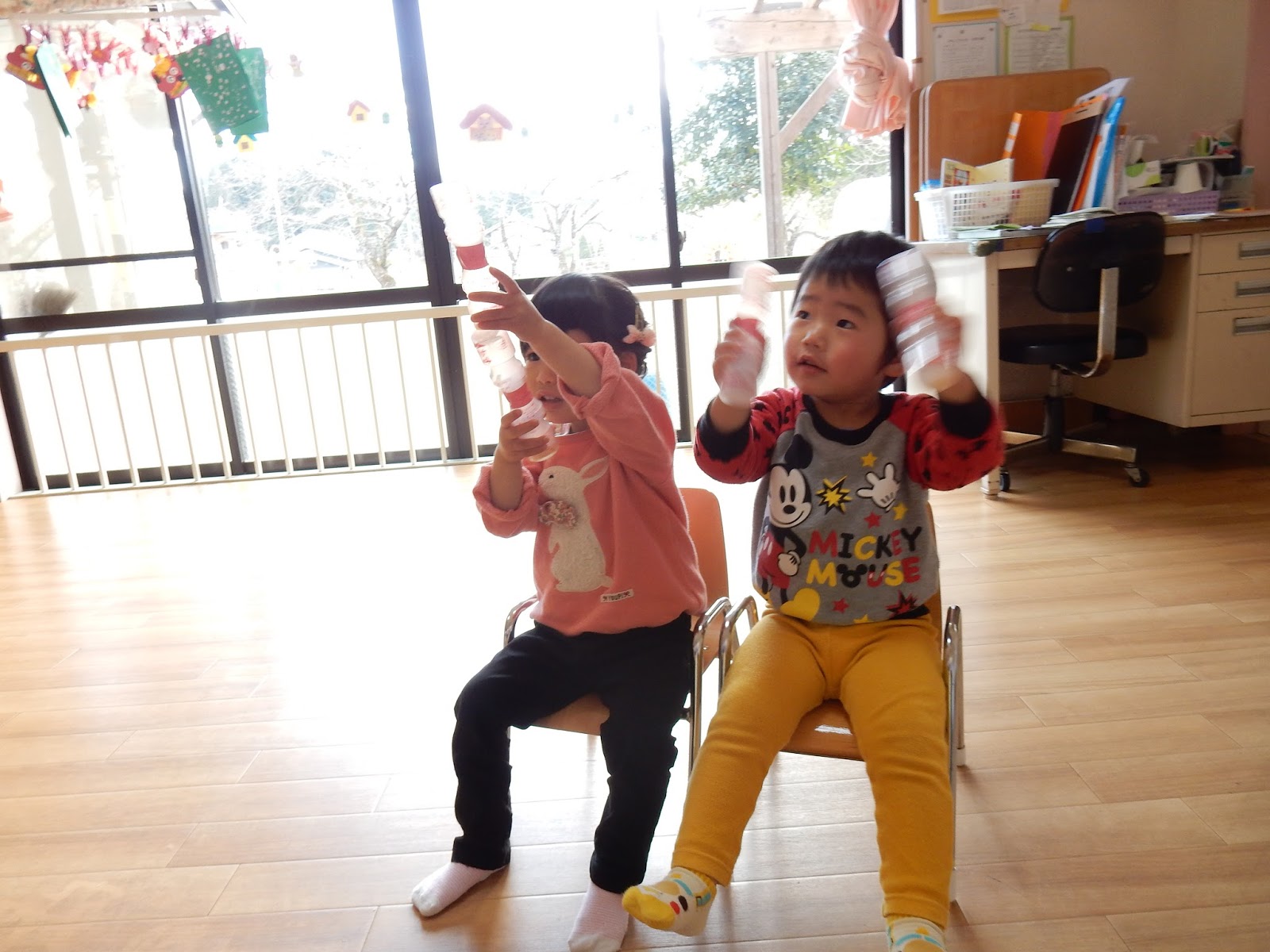 ひまわり組は、発表会の練習をして、製作をして、外遊び!! 外遊びから帰ってくると”ガクガク・・・・・あぁ~手が冷たい!!!” と、手を真っ赤にして入ってきました。やっぱり外の空気は寒い!