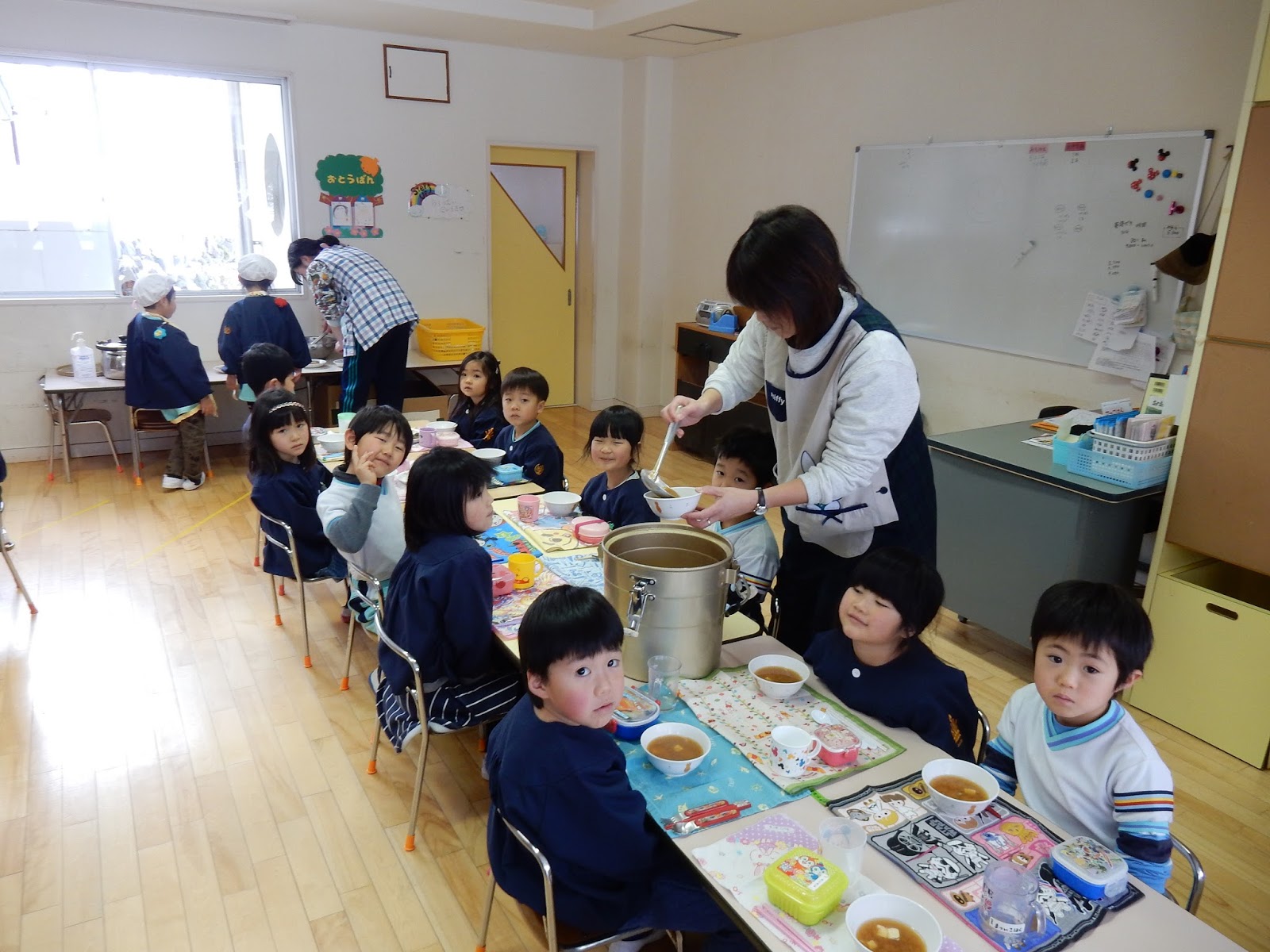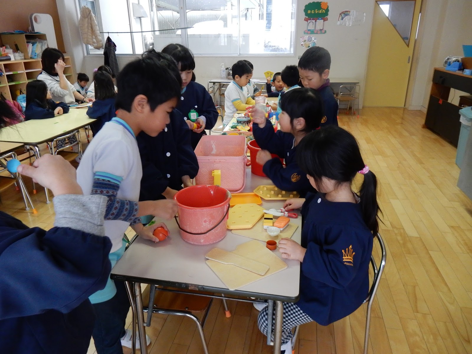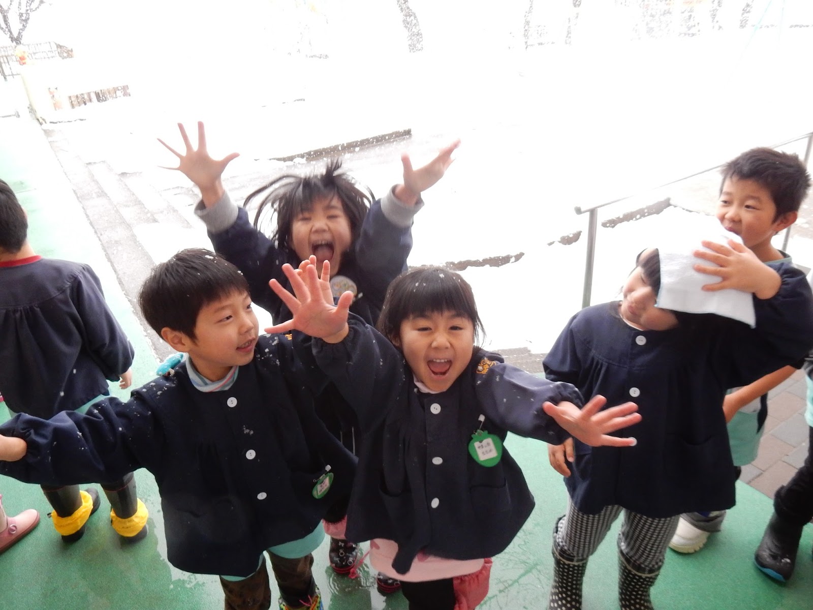 ようやく、冬らしい雪が降り、少し積もりましたね・・・ 園庭で思いっきり雪遊びができるまでは積もらず・・土や泥でウエアーが汚れてしまうかな・・・という感じの雪ですね・・・。 そして、何と!とうとう!今日がこの園舎と最後の日となりました!!!