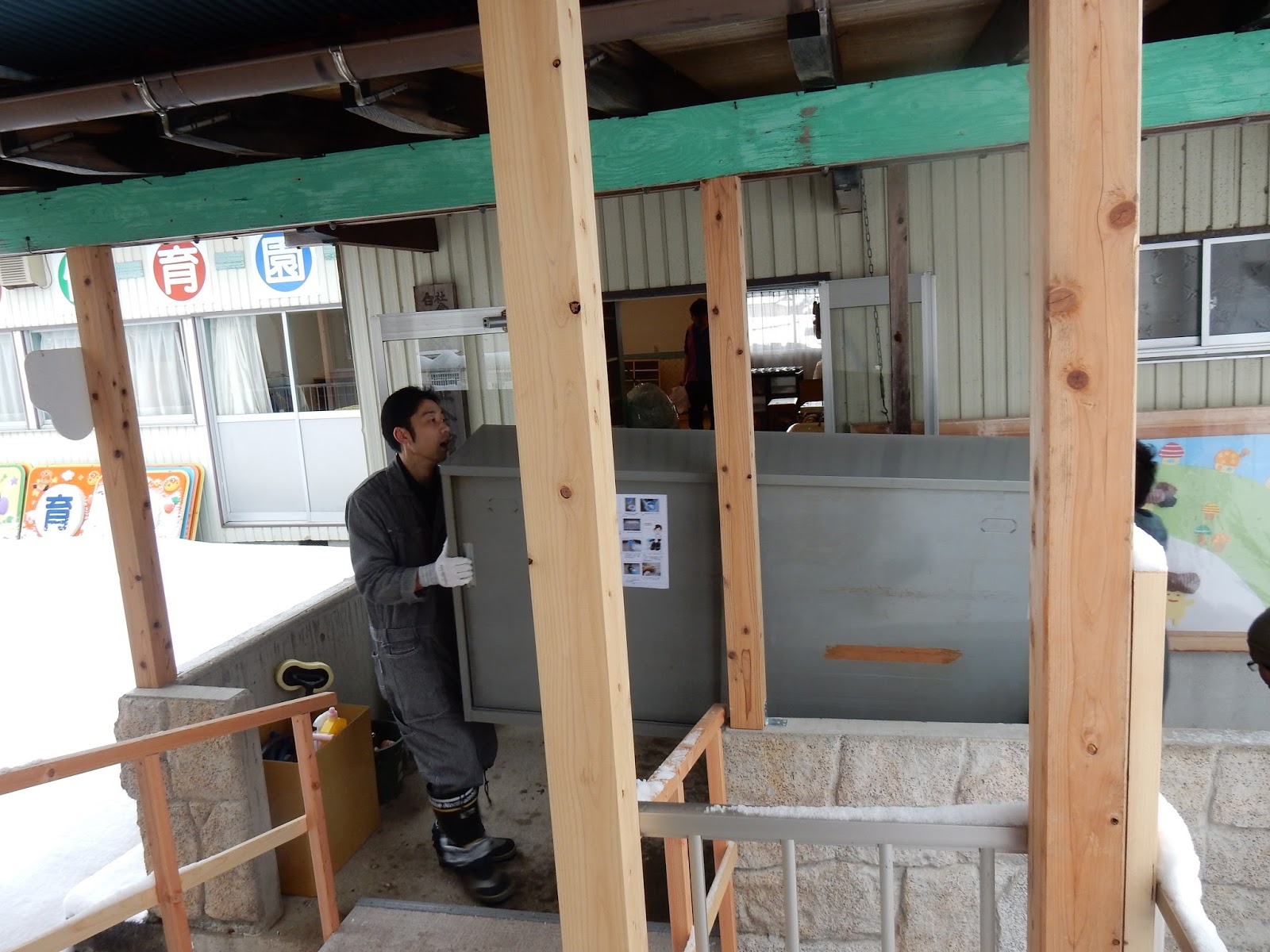 仮設園舎に引越ししました!足場が悪く色々と大変でしたが、関係者のみなさま、役員のみなさまのおかげで、無事に引越しを終える事ができました。本当にありがとうございました!