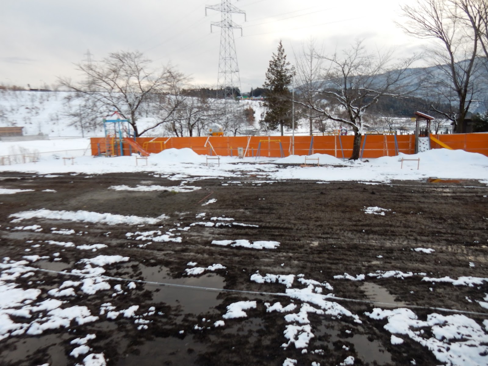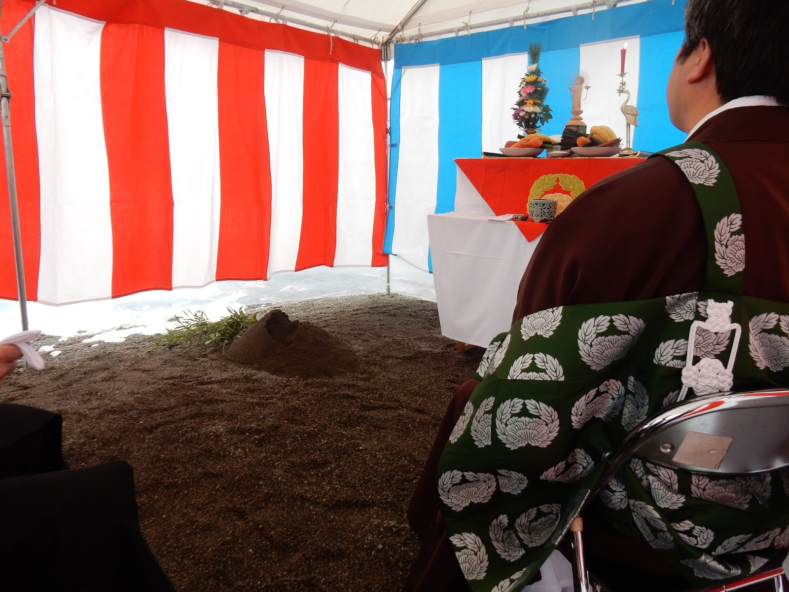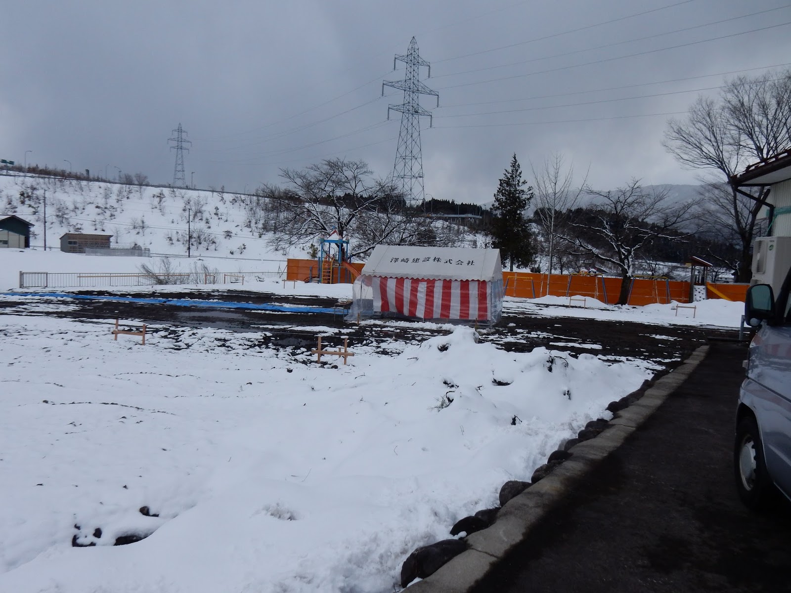 今日は、「起工式」を行いました。園長先生と、副園長先生と、業者の方皆様・・・小雪が舞う寒い気候の中でしたが、無事終えました。