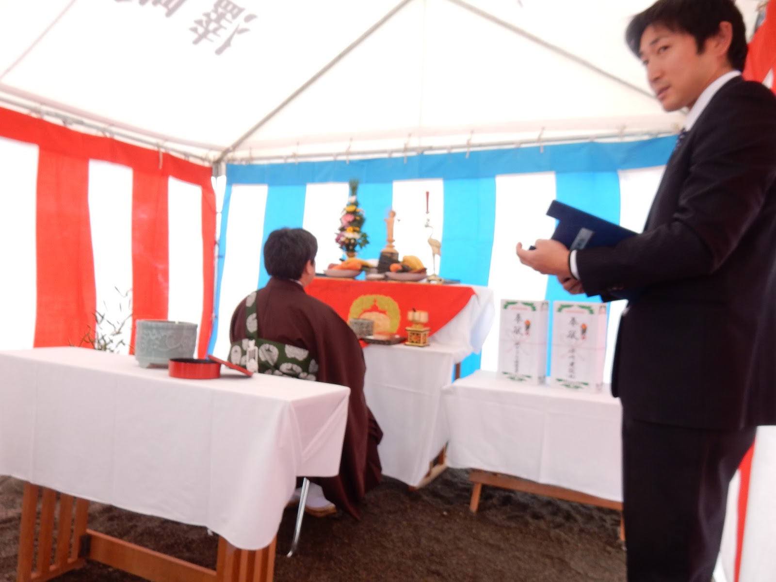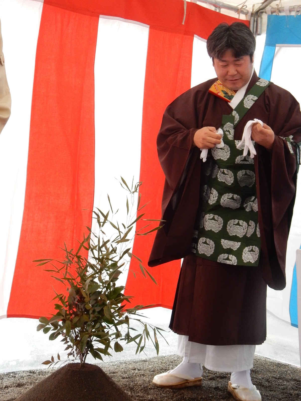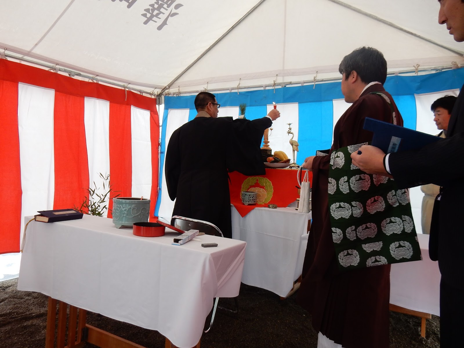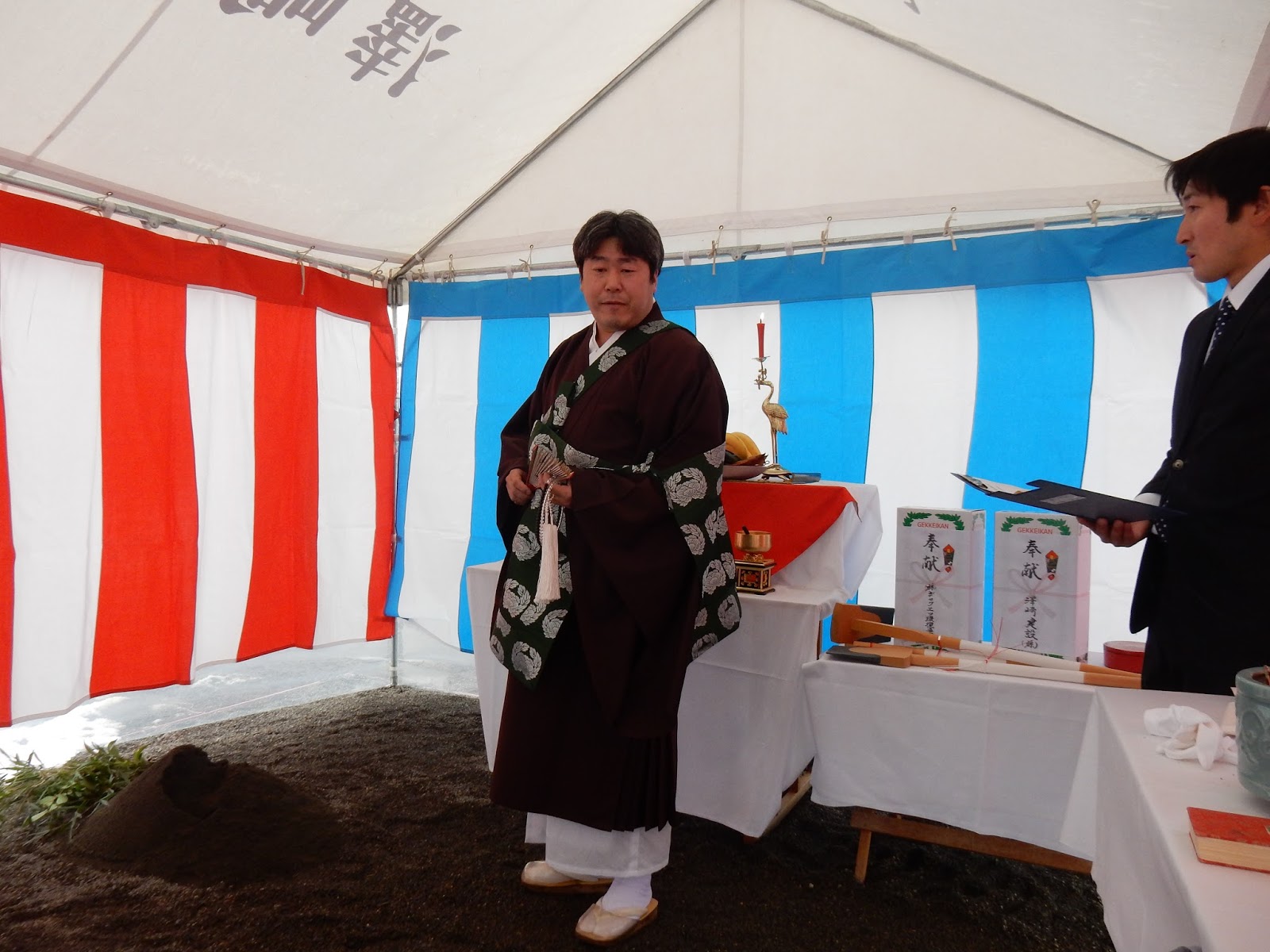 今日は、「起工式」を行いました。園長先生と、副園長先生と、業者の方皆様・・・小雪が舞う寒い気候の中でしたが、無事終えました。