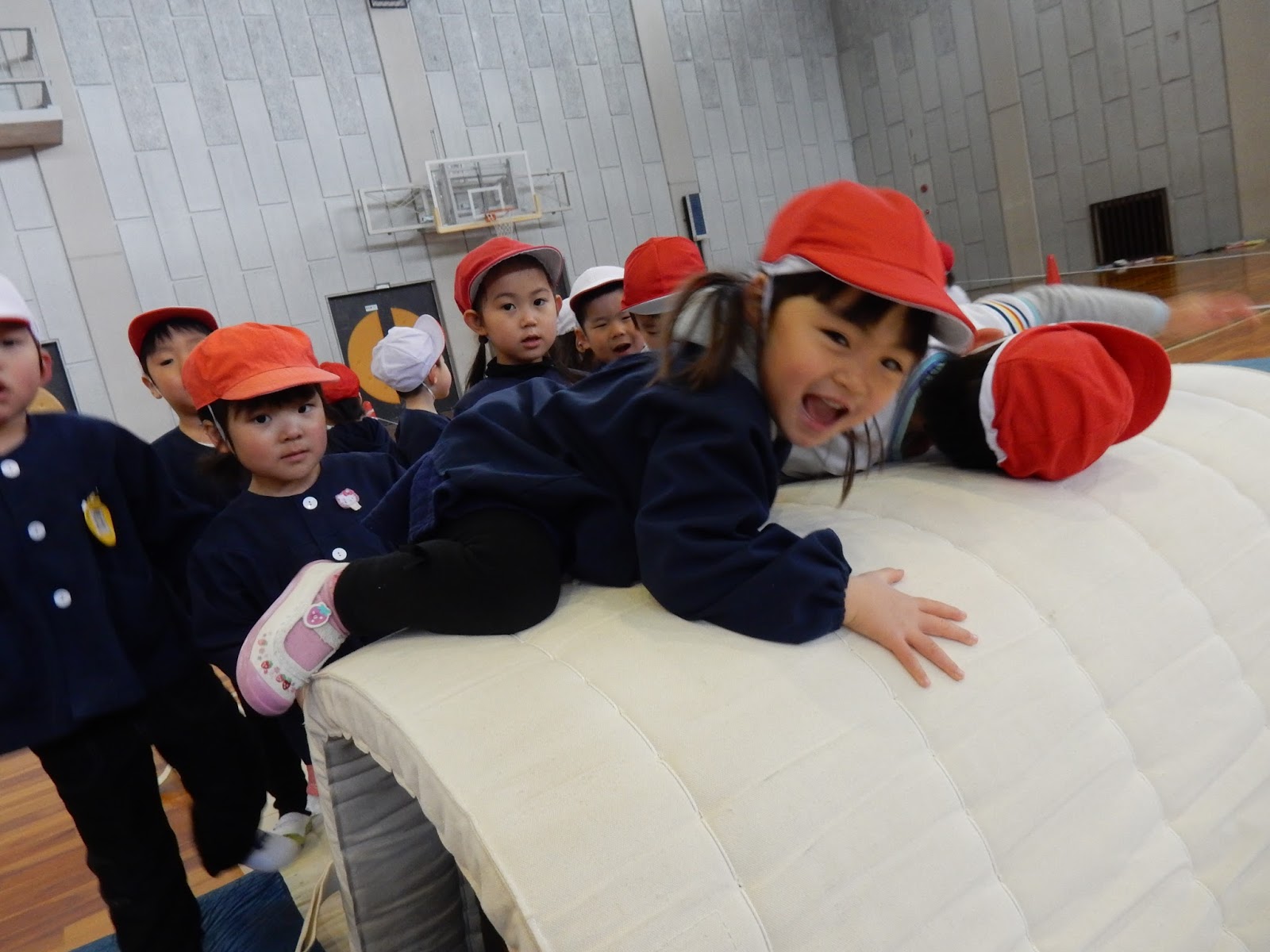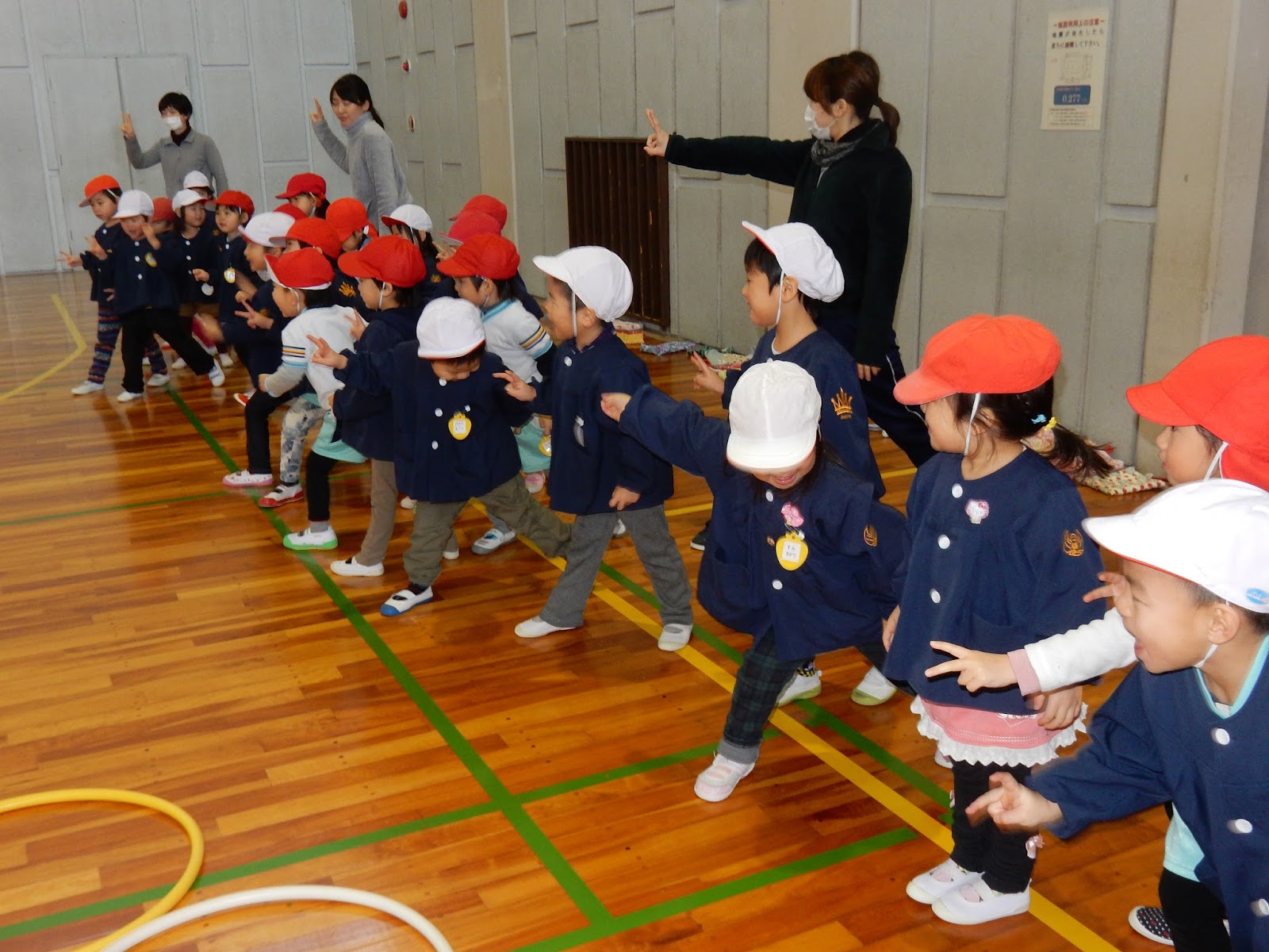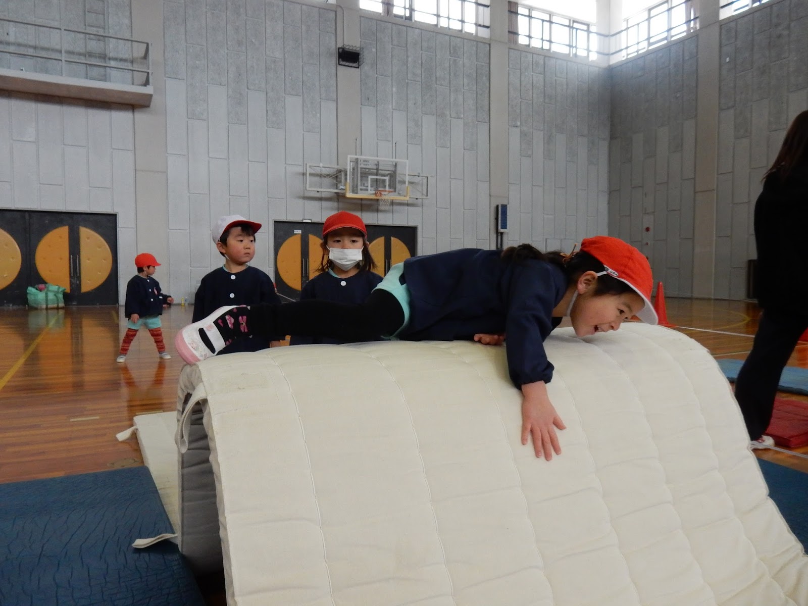 「今日は、ゴロゴロ先生の日やな~!」と、今日も体操教室を楽しみにして、ニコニコで話してきました。今日はどんな事をしたのかな・・・ と、その前に!!!仮設園舎の通路を通って”ひよこ”に行ける階段を作っていただきました!今まで、道路の方を通っていただき大変ご迷惑をおかけしましたひよこ組の保護者の皆、。ご協力ありがとうございました!これからは、この階段を使ってくださいね!!