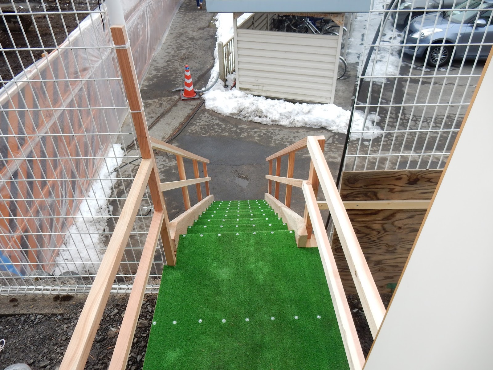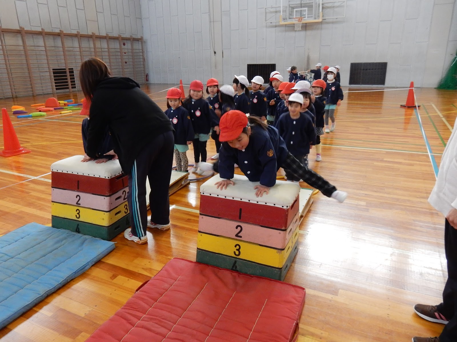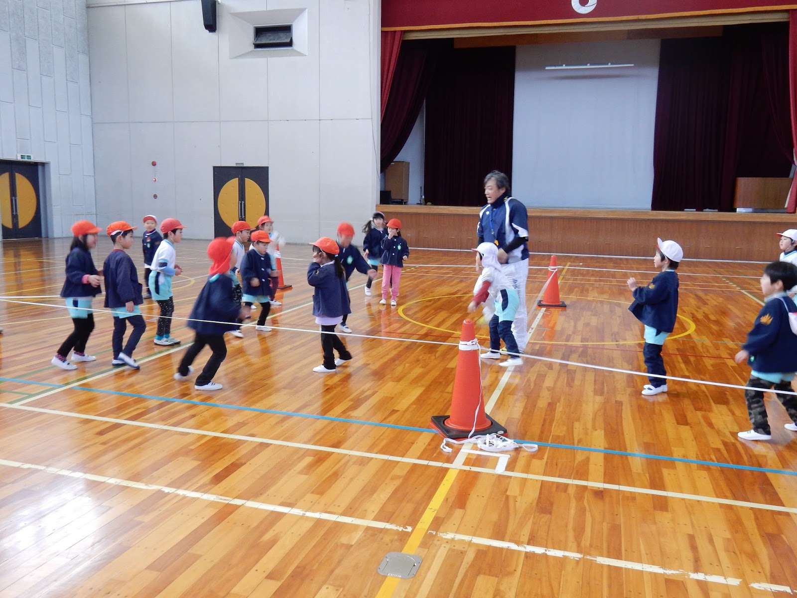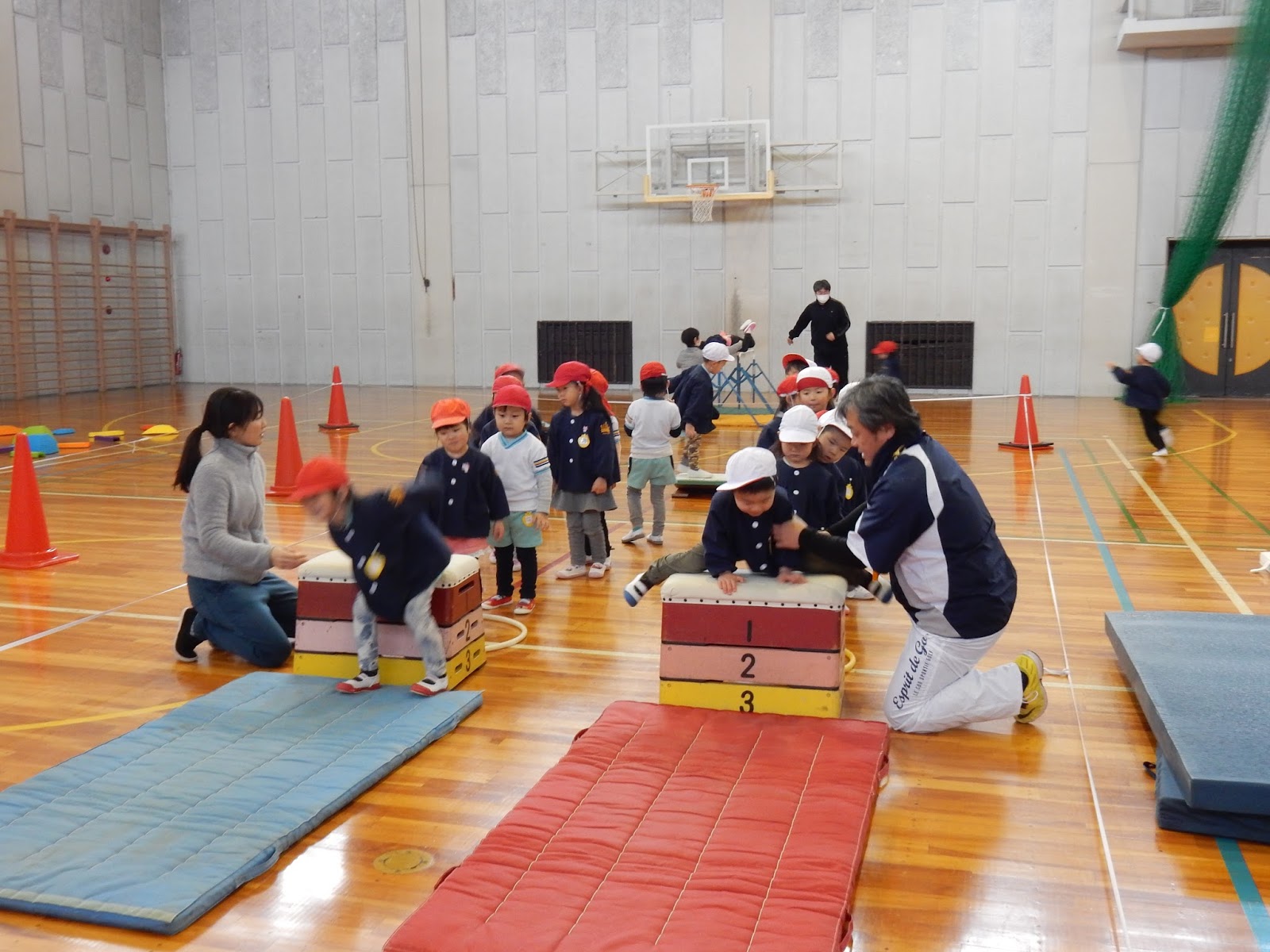 「今日は、ゴロゴロ先生の日やな~!」と、今日も体操教室を楽しみにして、ニコニコで話してきました。今日はどんな事をしたのかな・・・ と、その前に!!!仮設園舎の通路を通って”ひよこ”に行ける階段を作っていただきました!今まで、道路の方を通っていただき大変ご迷惑をおかけしましたひよこ組の保護者の皆、。ご協力ありがとうございました!これからは、この階段を使ってくださいね!!