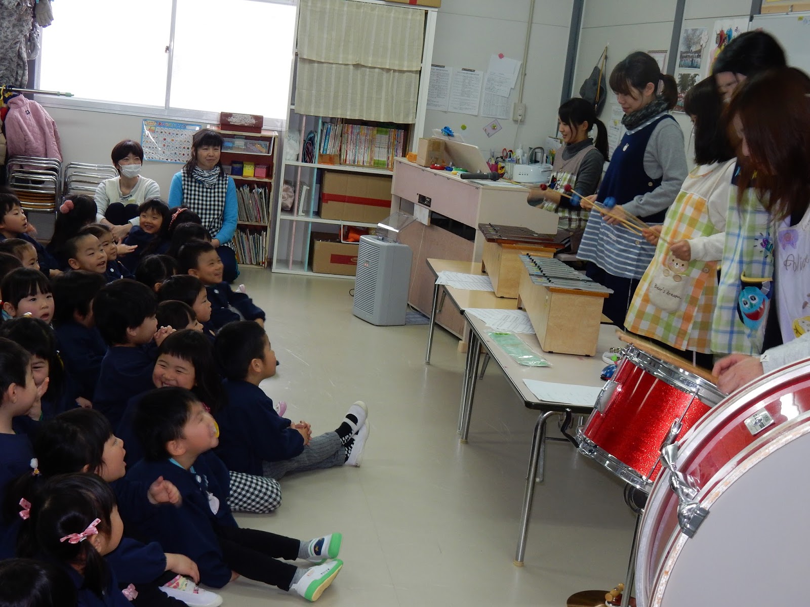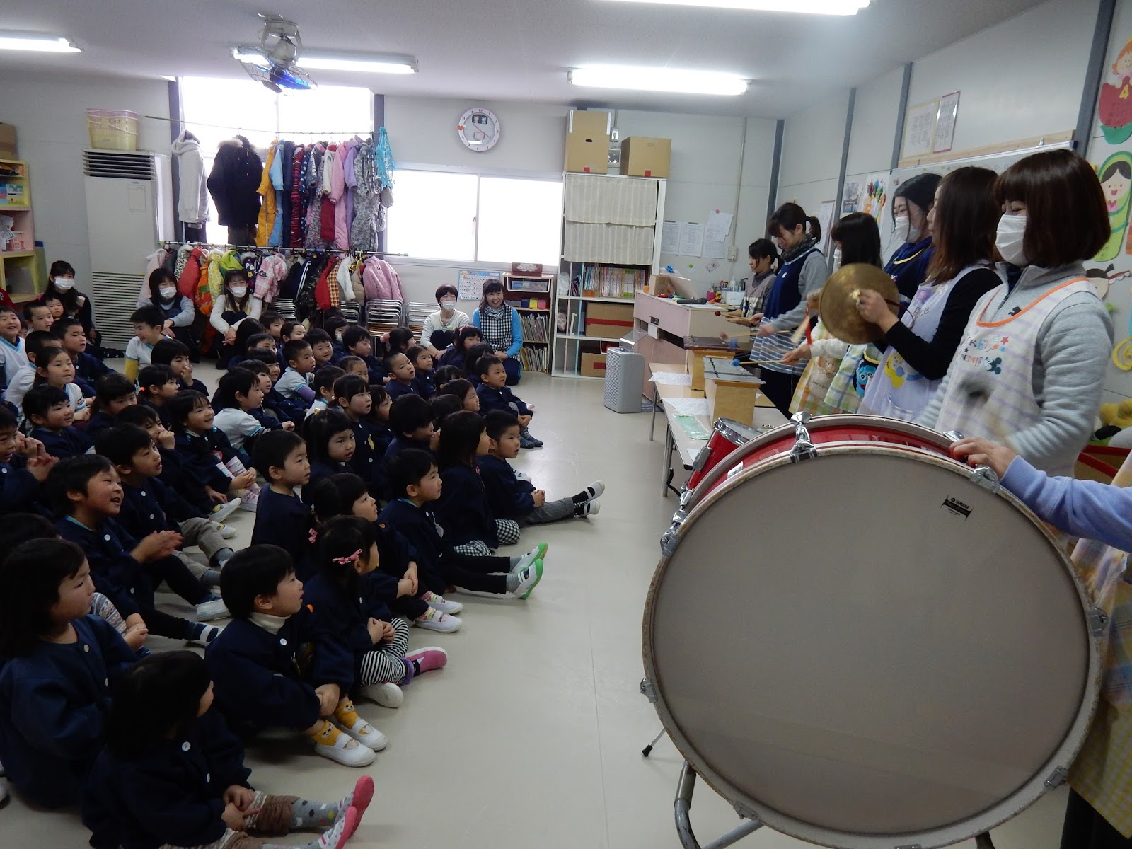 2月のお誕生会の先生の出し物は、♪楽器演奏♪です!!!先日行われた発表会では、子ども達が頑張ってやってくれました。今日は、先生達が発表しましたよ!
